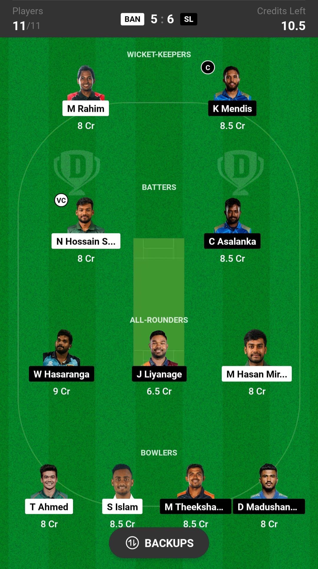 C Asalanka and P Nissanka are the two best batsmen picks for the Dream11 team. Both the top order batters played exceptionally well in the last match. N Hossain Shanto is also a good pick for today's Dream11 fantasy team.