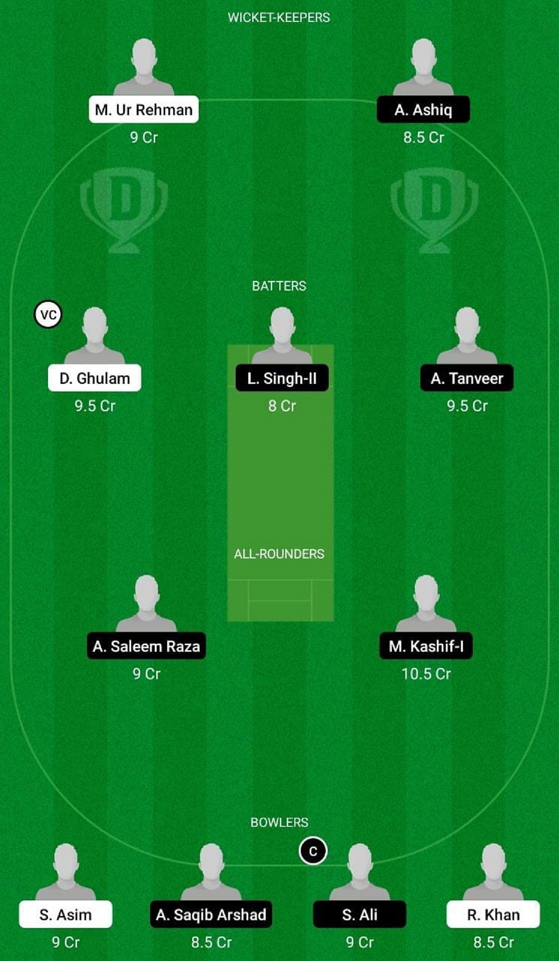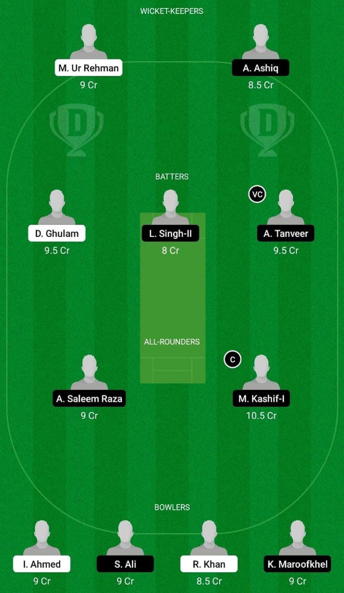 Captain: M Kashif | Vice-Captain: A Tanveer.