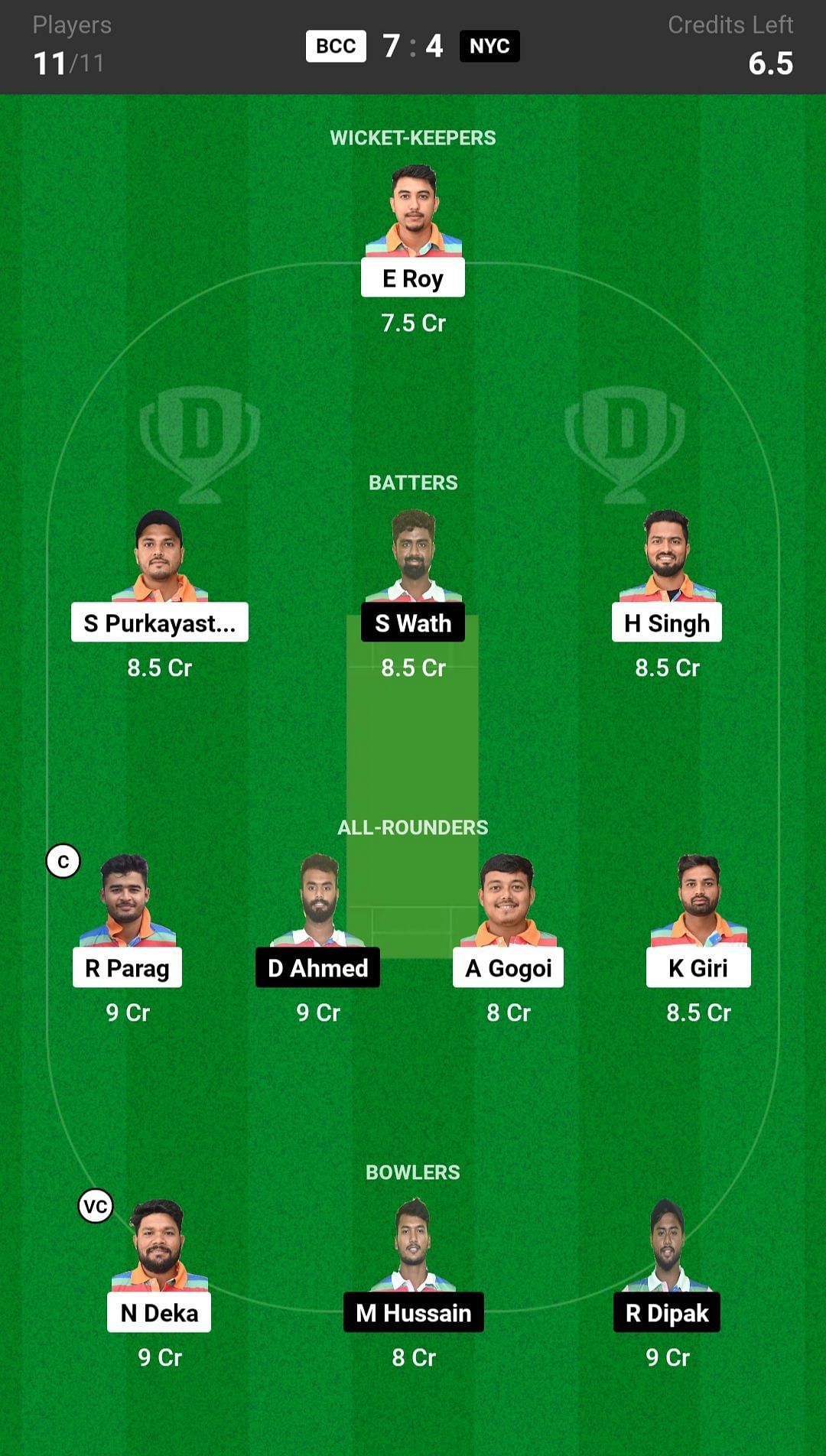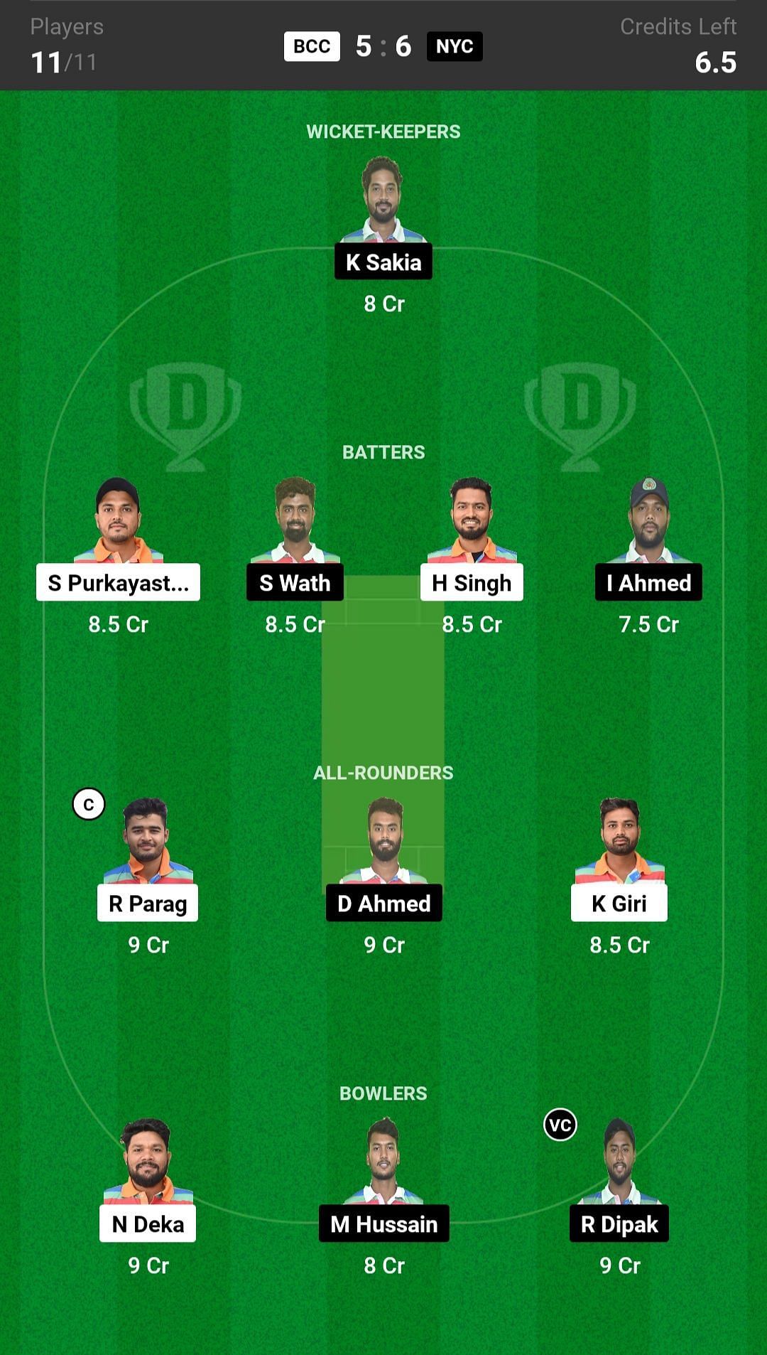 The Final match of the BYJU Guwahati Premier League will see Bud CC (BCC) squaring off against 91 Yards Club (NYC) at the Judges Field in Guwahati on Tuesday, March 7. Ahead of this exciting match, here's all you need to know about the BCC vs NYC Dream11 Prediction, today's playing 11s, fantasy cricket tips, best player picks and the pitch report.