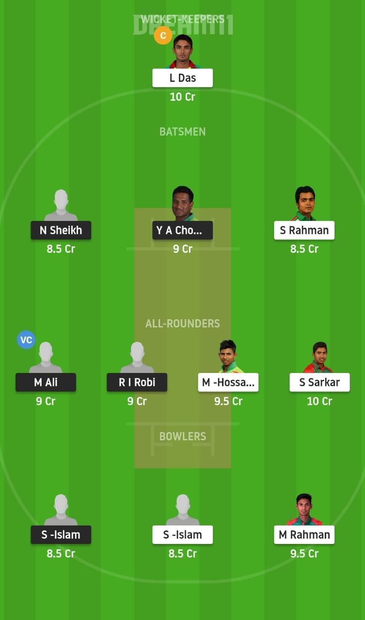 Captain: Liton Das Vice-Captain: Muktar Ali