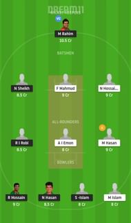 Fantasy Suggestion #1: Mushfiqur Rahim, Mohammad Naim, Fazle Mahmud, Nazmul Hossain Shanto, Robiul Islam Robi, Anisul Islam Emon, Mahedi Hasan, Rubel Hossain, Nayeem Hasan, Shafiqul Islam, Mukidul Islam.