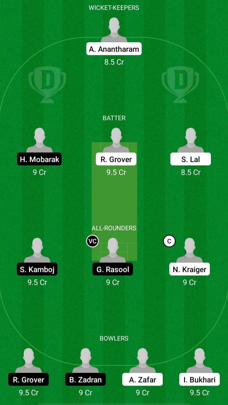 Fantasy Suggestion #2: Abhilash Anantharam, Hossain Mobarak, Rohit Grover, Sahil Lal, Sandeep Kamboj, Gulzar Rasool, Nick Kraiger, Rahul Grover, Belal Zadran, Awais Zafar, Imran Bukhari.
