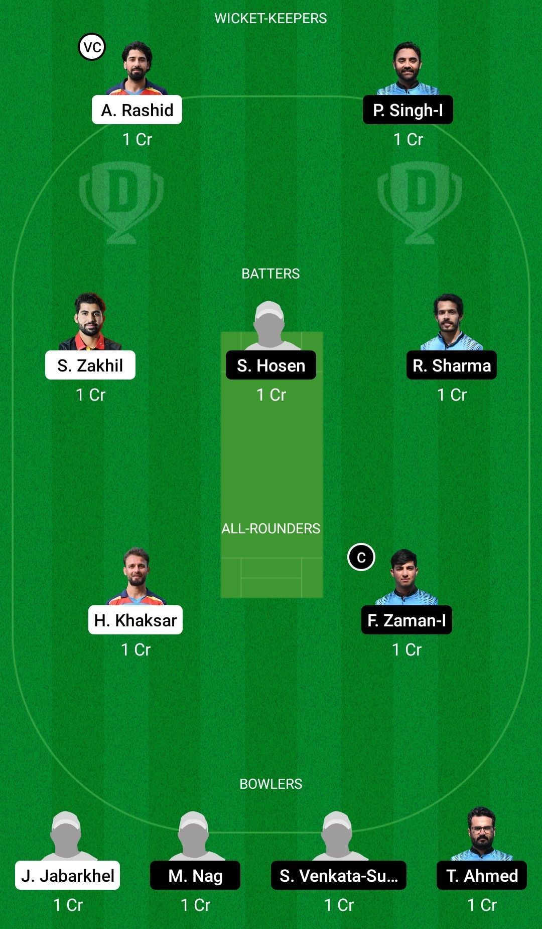 Sazzad Hosen (c), Paramjeet Singh (wk), Aniruddha Godbole, Rajiv Sharma, Sarath Muppirala, Arshvir Singh, Fakhar Zaman, Tufail Ahmed, Srikanth Venkata Subramanian, Vishal Ramteke, Manoj Nag.