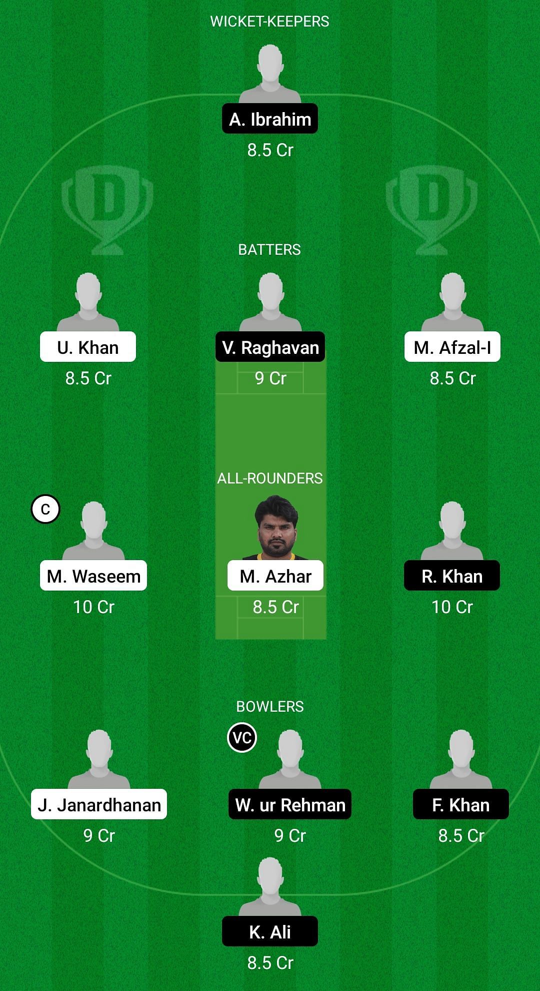 Fantasy Suggestion #1: Arif Ibrahim, Usman Khan, Vinod Raghavan, Muhammad Afzal, Mohammad Waseem, Mohammad Azhar, Rehan Khan, Jiju Janardhanan, Wasee ur Rehman, Farhad Khan, Kaif Ali.