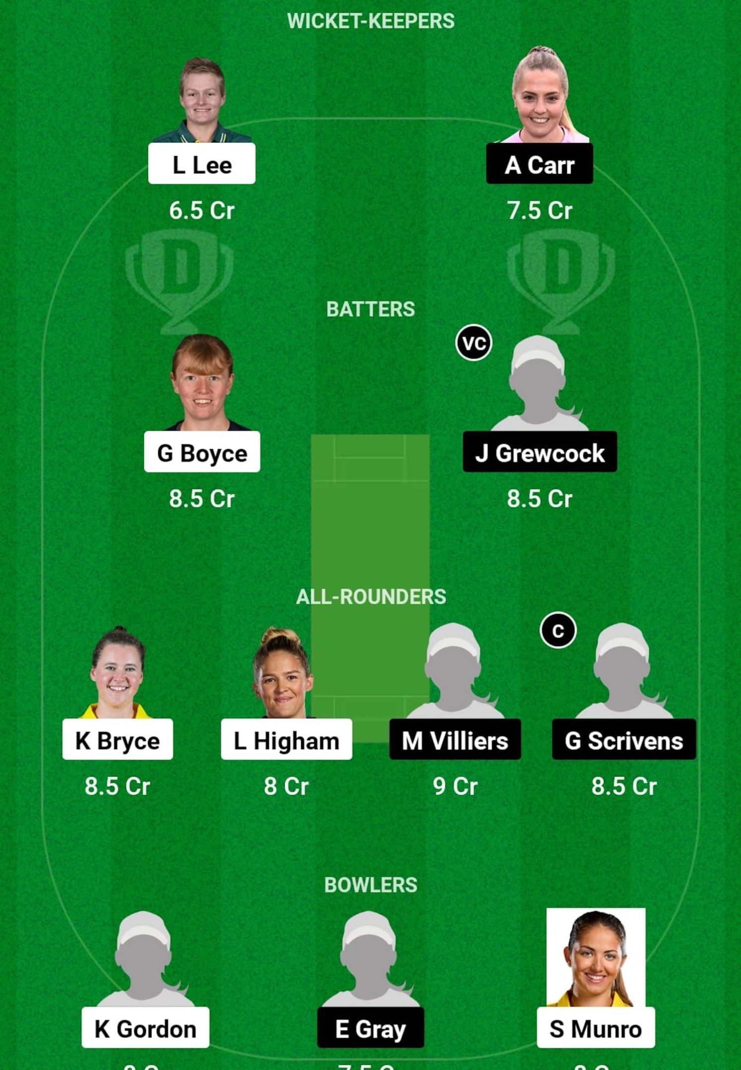 Jodi Grewcock has been pretty handy with both bat and ball in this tournament. Her wicket-taking ability makes Grewcock a brilliant choice as the captain or vice-captain of the match.
