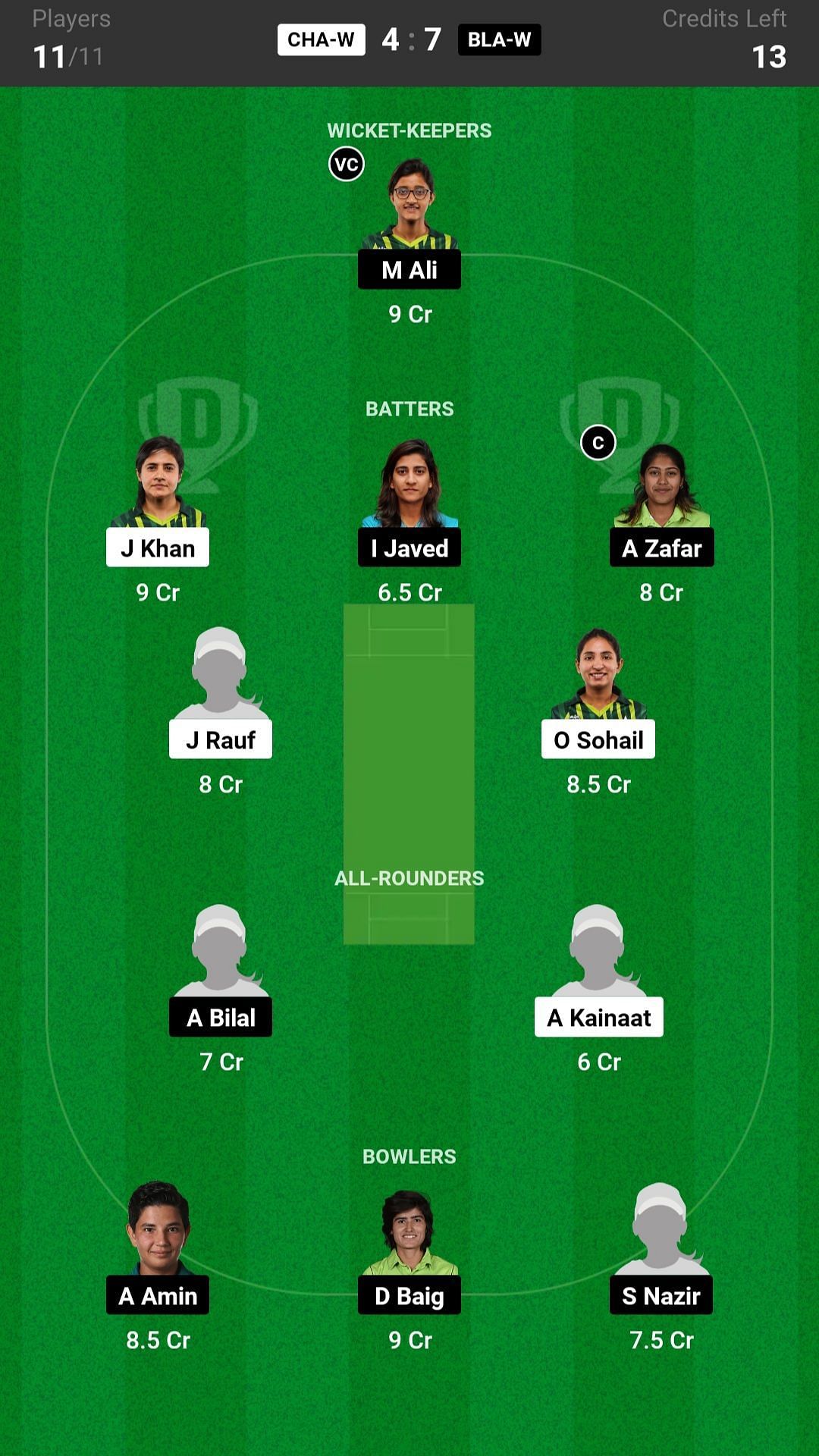 BLA-W vs CHA-W Dream11 Match Top Picks