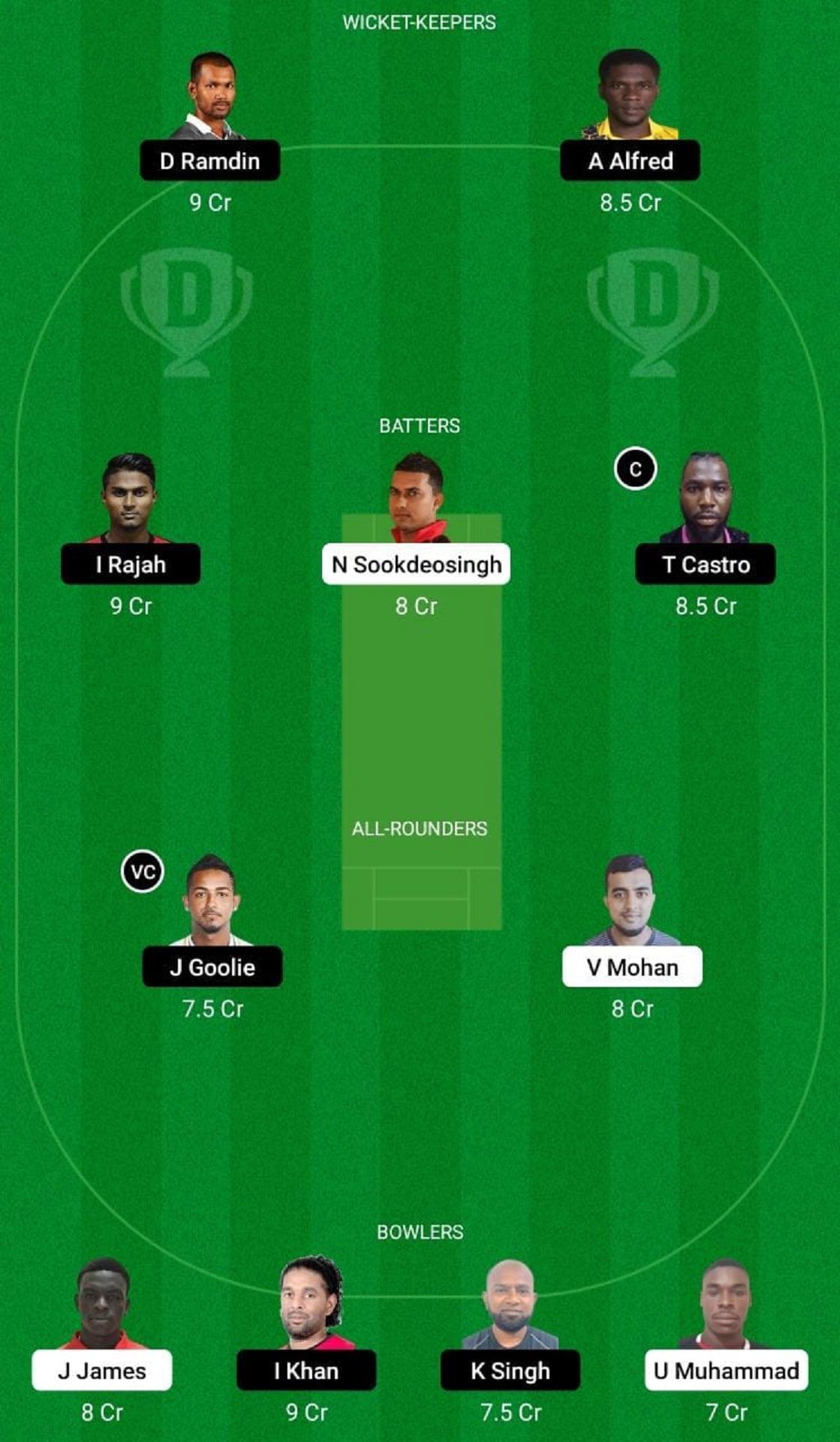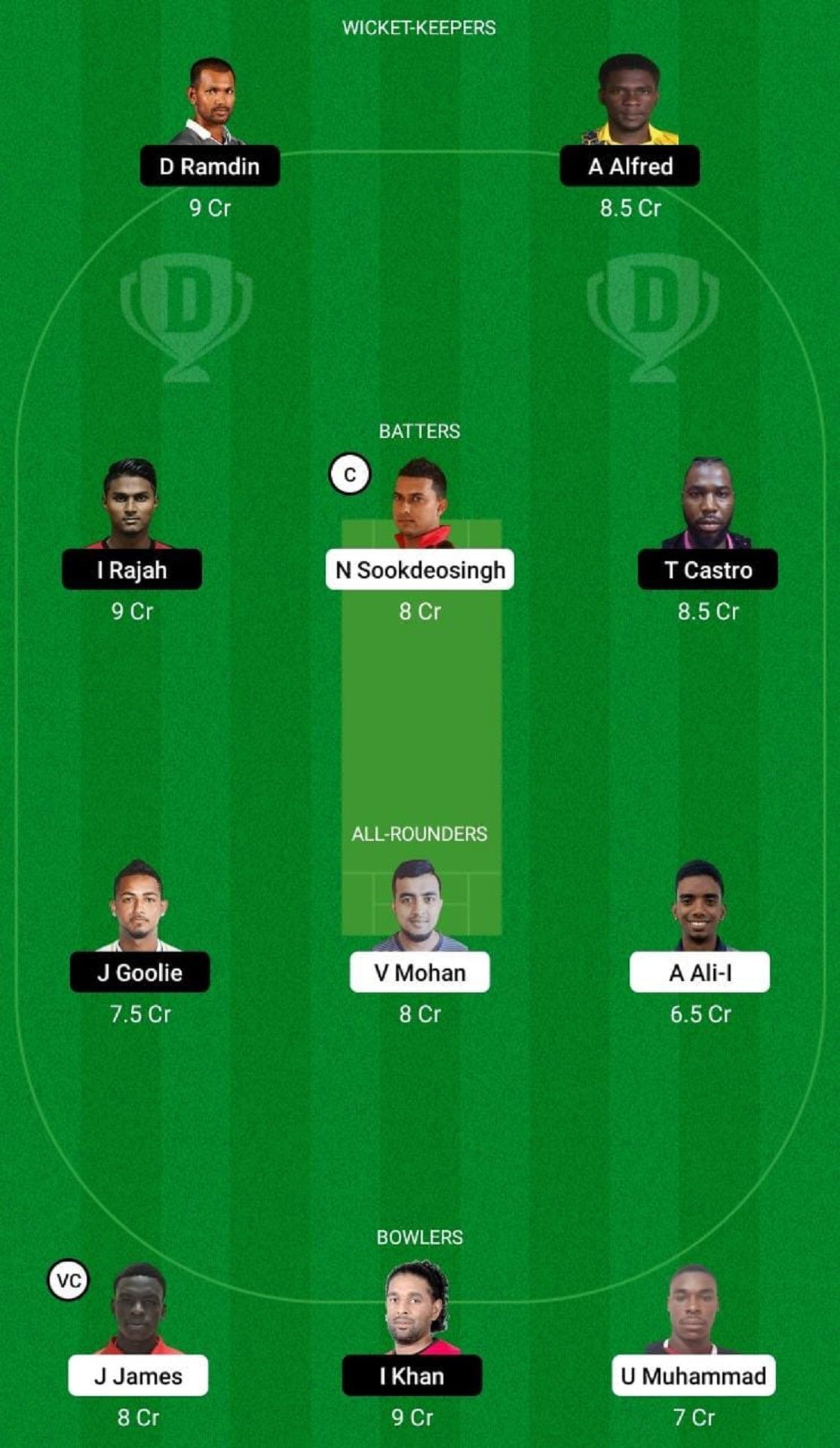 Isaiah Rajah, JU Goolie, Teshawn Castro, Jahron Alfred, I Khan(C), Liam Vinode Mamchan, Denesh Ramdin, Aaron Alfred, Adrian Sehzad Ali, Kashtri Singh, R Jaipaul.