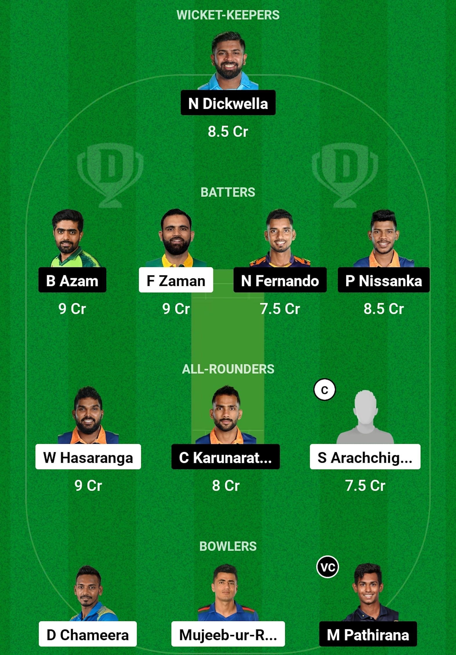 Batters: Babar Azam, Fakhar Zaman, Nuwanidu Fernando, Pathum Nissanka