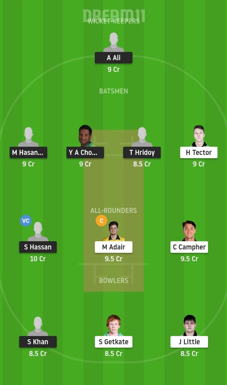Fantasy Suggestion #1: Akbar Ali, Yasir Ali Chowdhury, Towhid Hridoy, Harry Tector, M Hasan Joy, Saif Hassan, Mark Adair, Curtis Campher, Shane Getkate, Sumon Khan, Joshua Little