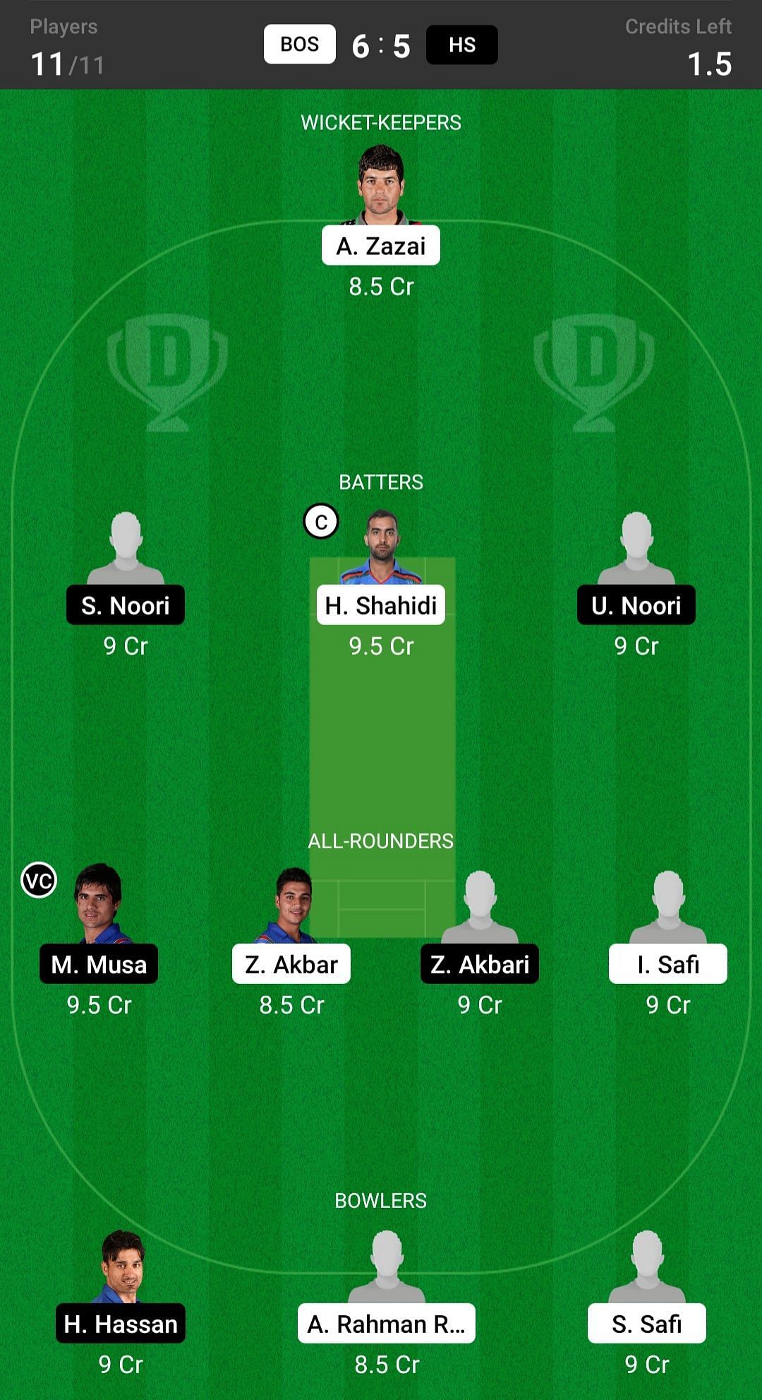 Fantasy suggestion #2: A Zazai, H Zazai, H Shahidi, U Noori, M Musa, Z Akbar, Z Akbari, I Safi, H Hassan, F Khawari, A Rahman