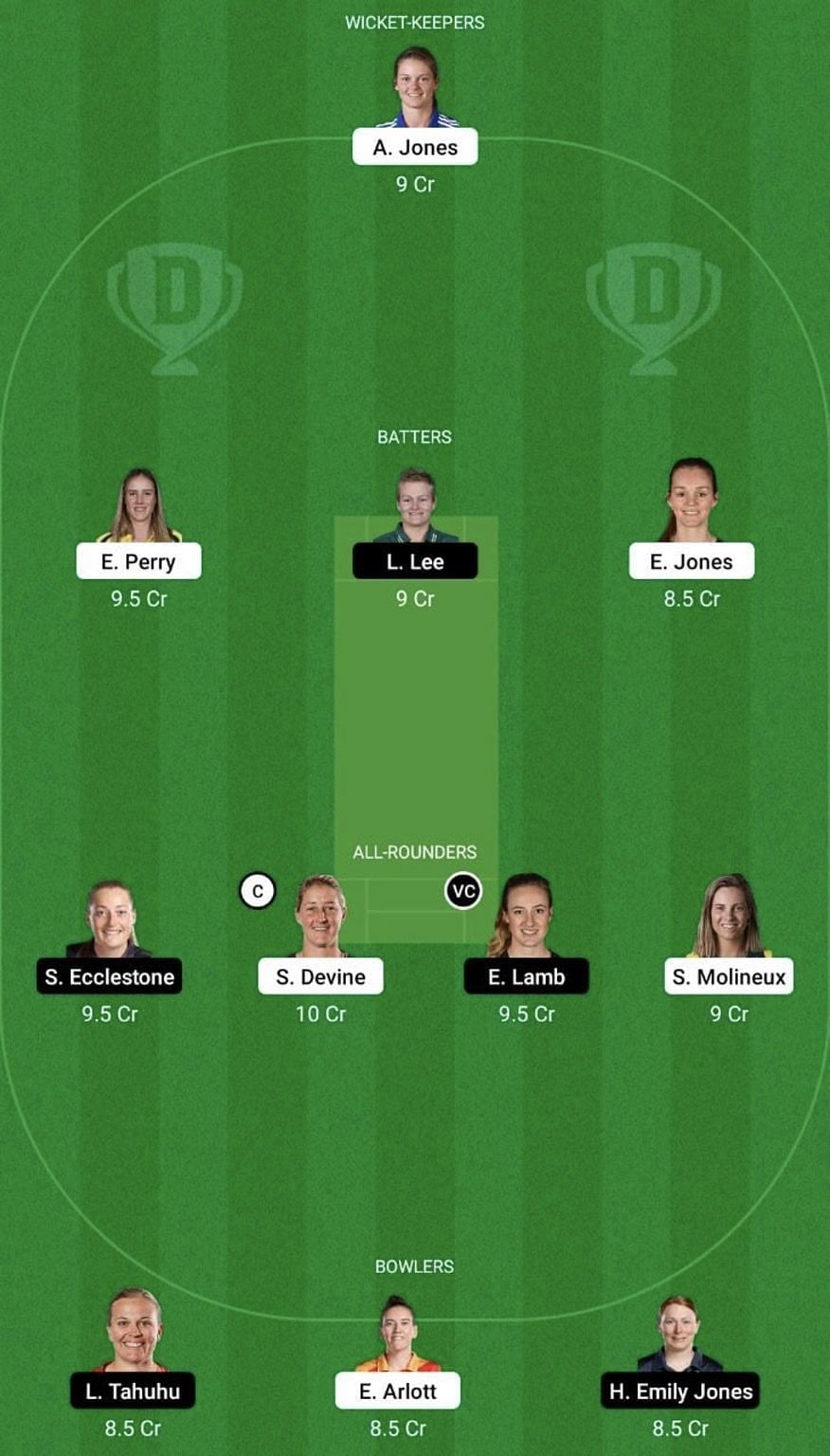 All-rounders: Sophie Ecclestone, Sophie Devine (c), Emma Lamb (vc), Sophie Molineux