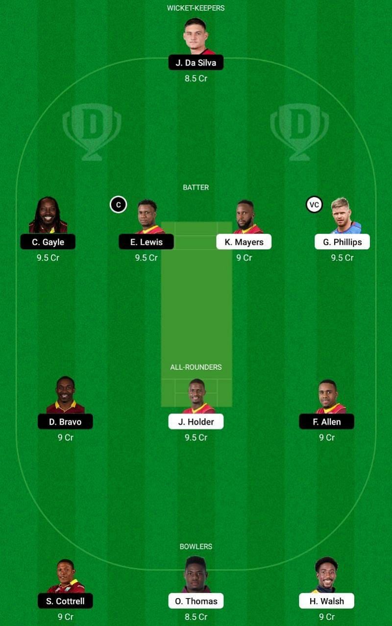 Fantasy Suggestion #1: Joshua da Silva, Evin Lewis, Glenn Phillips, Kyle Mayers, Sherfane Rutherford, Dwayne Bravo, Fabian Allen, Jason Holder, Hayden Walsh, Mohammad Amir and Sheldon Cottrell