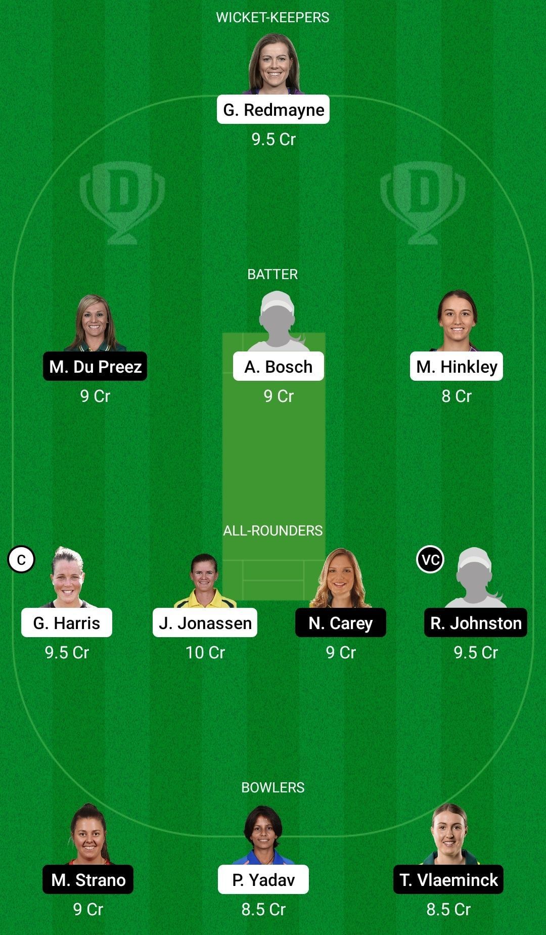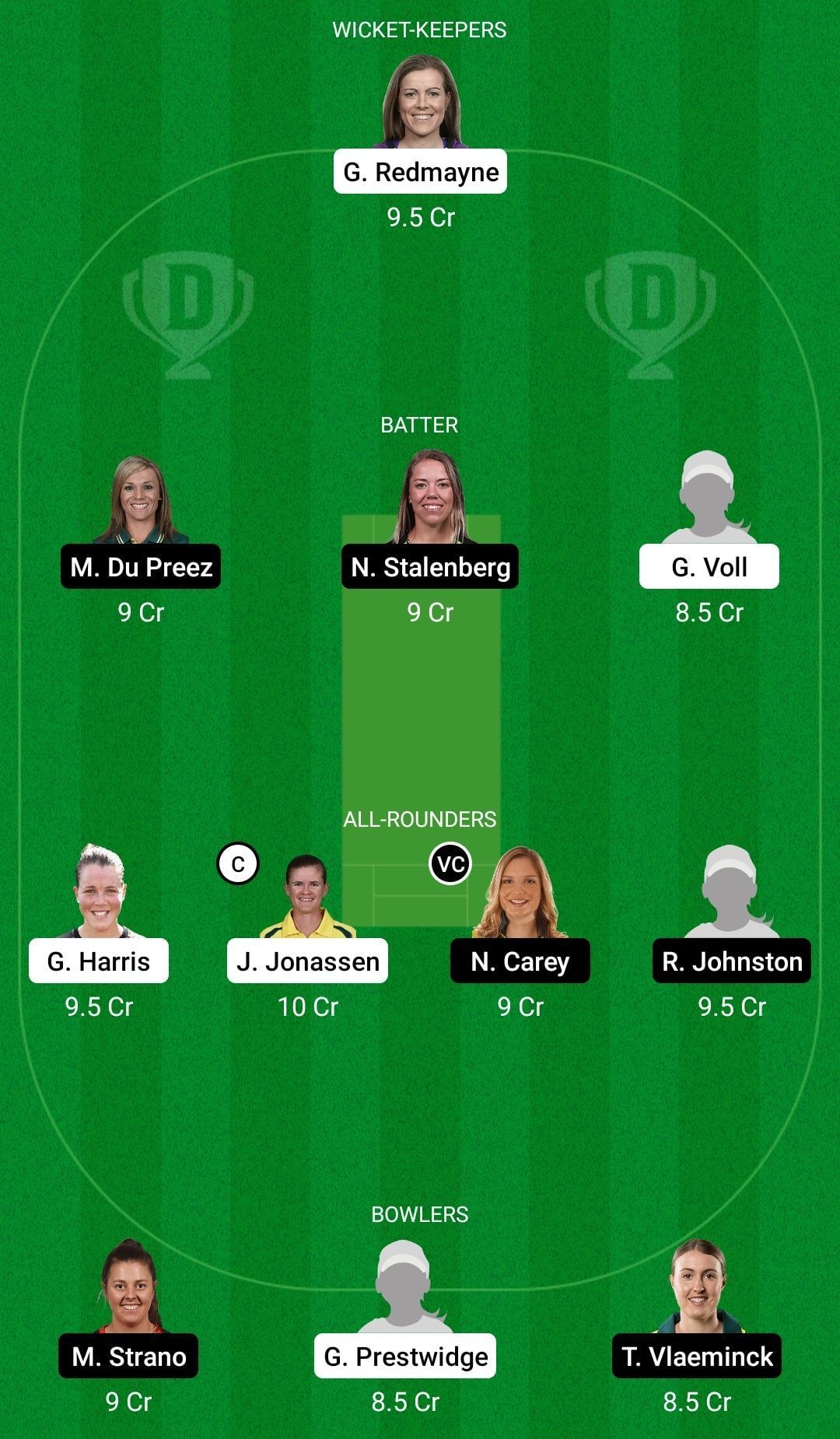 Fantasy Suggestion #1: Georgia Redmayne, Mignon du Preez, Naomi Stalenberg, Georgia Voll, Grace Harris, Jess Jonassen, Nicola Carey, Ruth Johnston, Molly Strano, Georgia Prestwidge, Tayla Vlaeminck