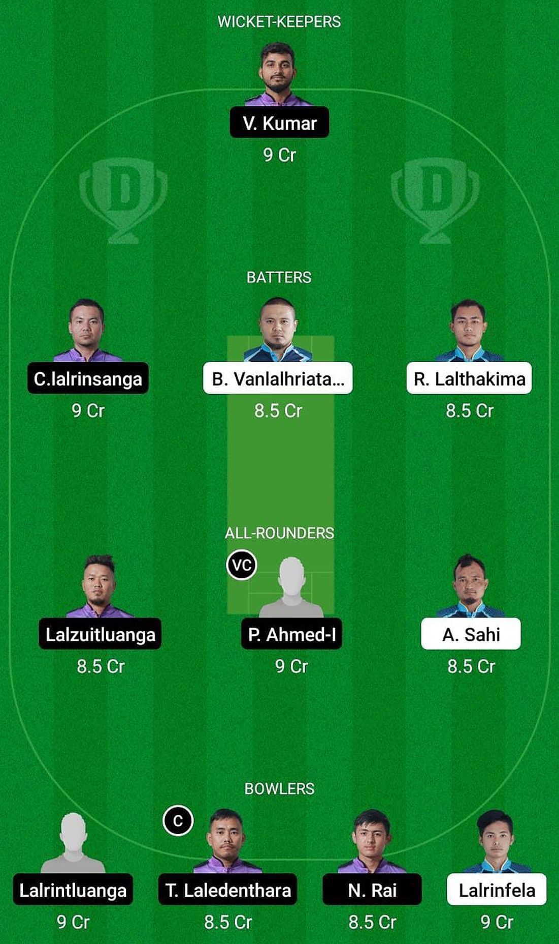 Fantasy Suggestion #2: Vikash Kumar, C Lalrinsanga, Bobby Vanlalhriata Vanchhawng, R Lalthakima, Lalzuitualanga, Parvez Ahmed, Arbin Sahi, Lalrintluanga, TC Laledenthara, Nasib Rai, Lalrinfela