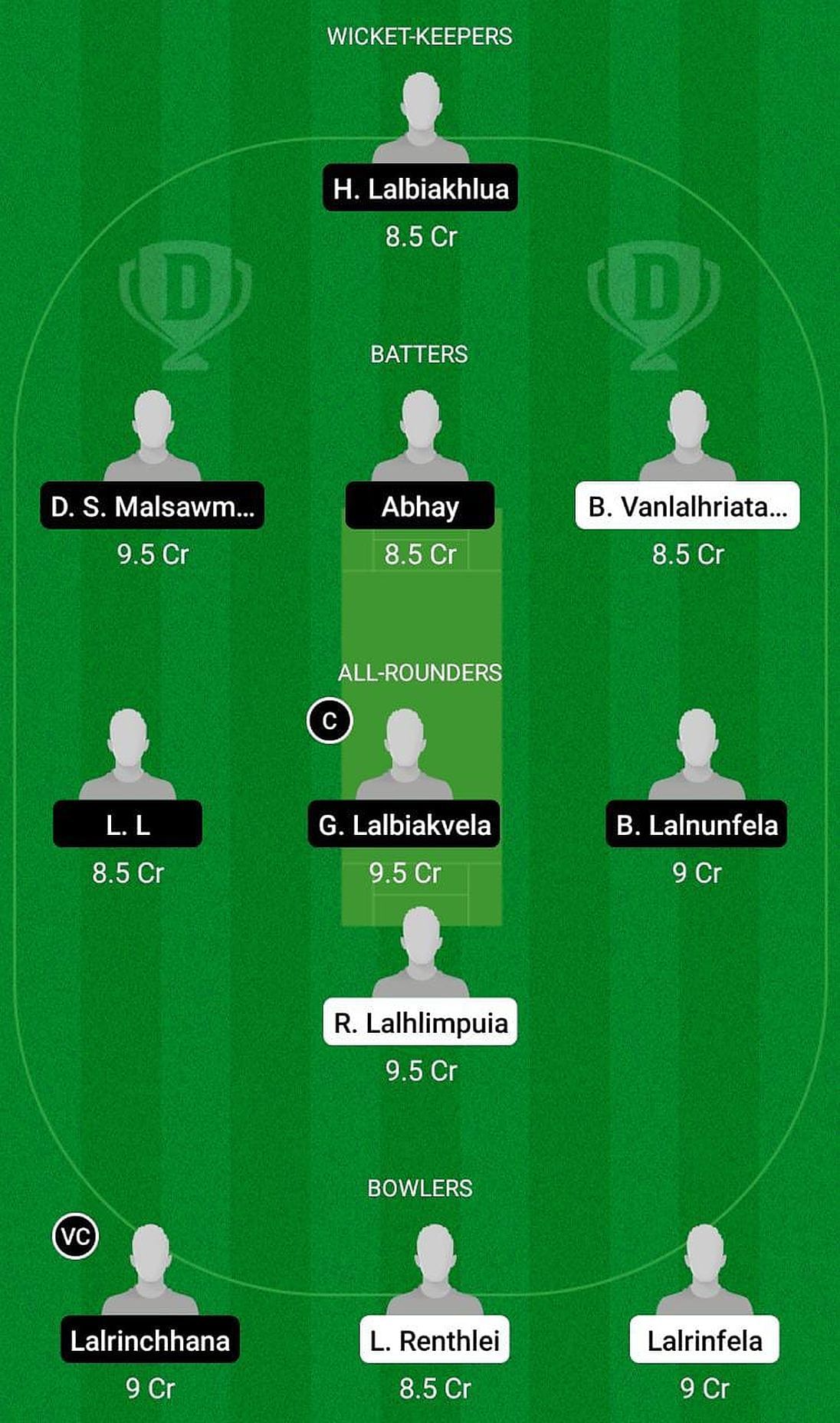 Fantasy Suggestion #1: H Lalbiakhlua, David Malsawmtluanga, Abhay Joshi, Bobby Vanlalhriata Vanchhawng, Lalrempuia, G Lalbiakvela, B Lalnunfela, R Lalhlimpuia, Lalrinchhana, Lalawmpuia Renthlei, Lalrinfela