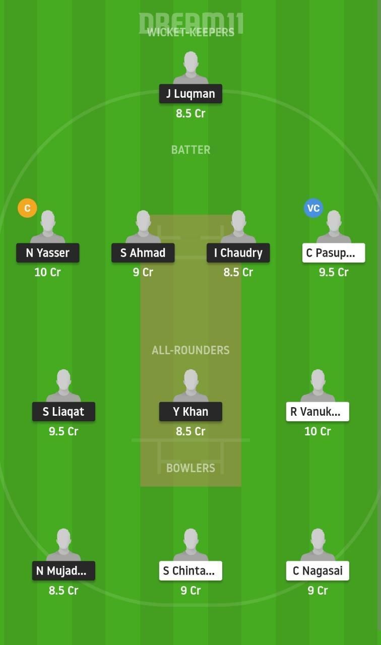 Fantasy Suggestion #1: J Luqman, N Yasser, C Pasupuleti, I Chaudry, S Liaqat, R Vanukuri, Y Khan, A Panchal, C Nagasai, N Mujadady, S Chintanippu