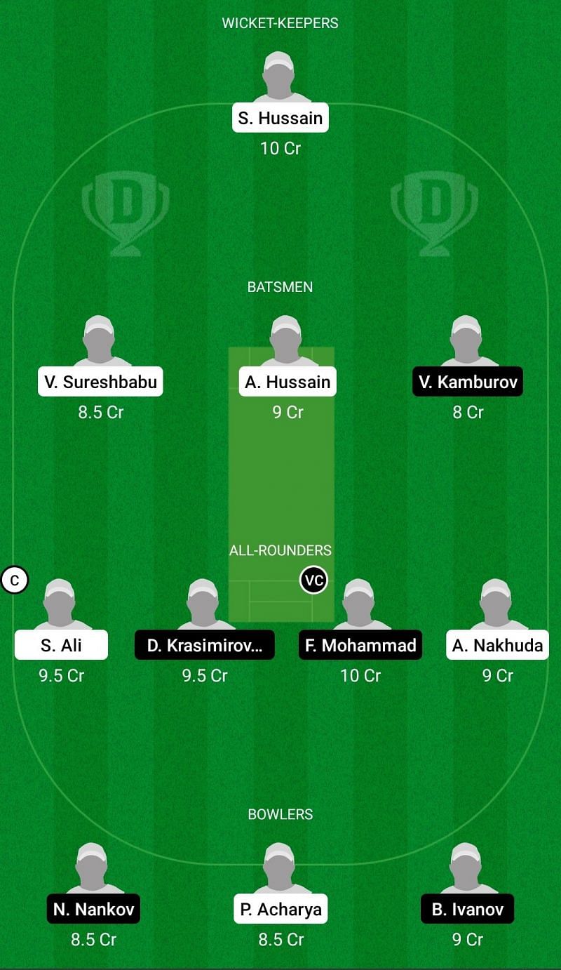 Fantasy Suggestion #1: Saim Hussain, Vishnu Sureshbabu, Ali Hussain, Vasilen Kamburov, Sulaiman Ali, Dimo Nikolov, Fayaz Mohammad, Aamir Nakhuda, Nikolay Nankov, Parth Acharya, Boyko Ivanov