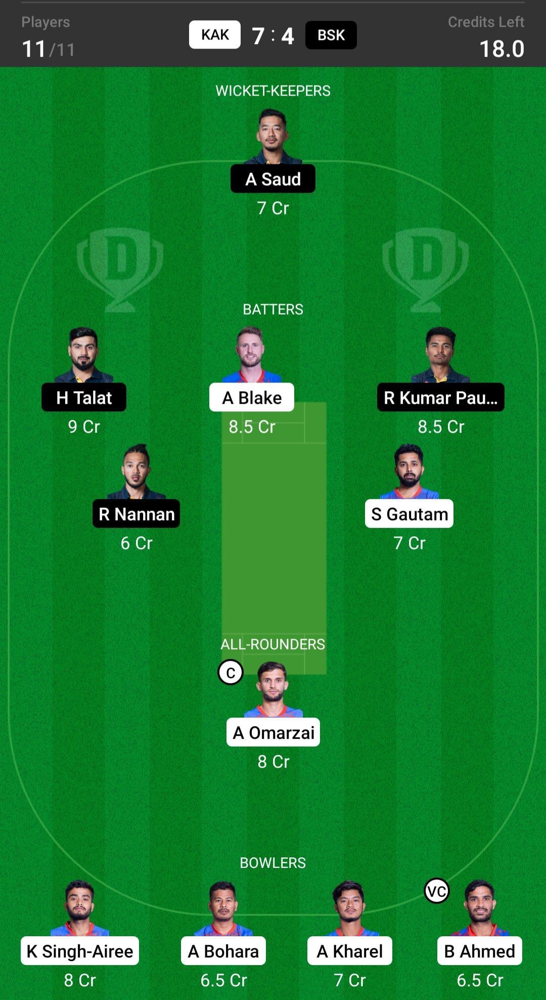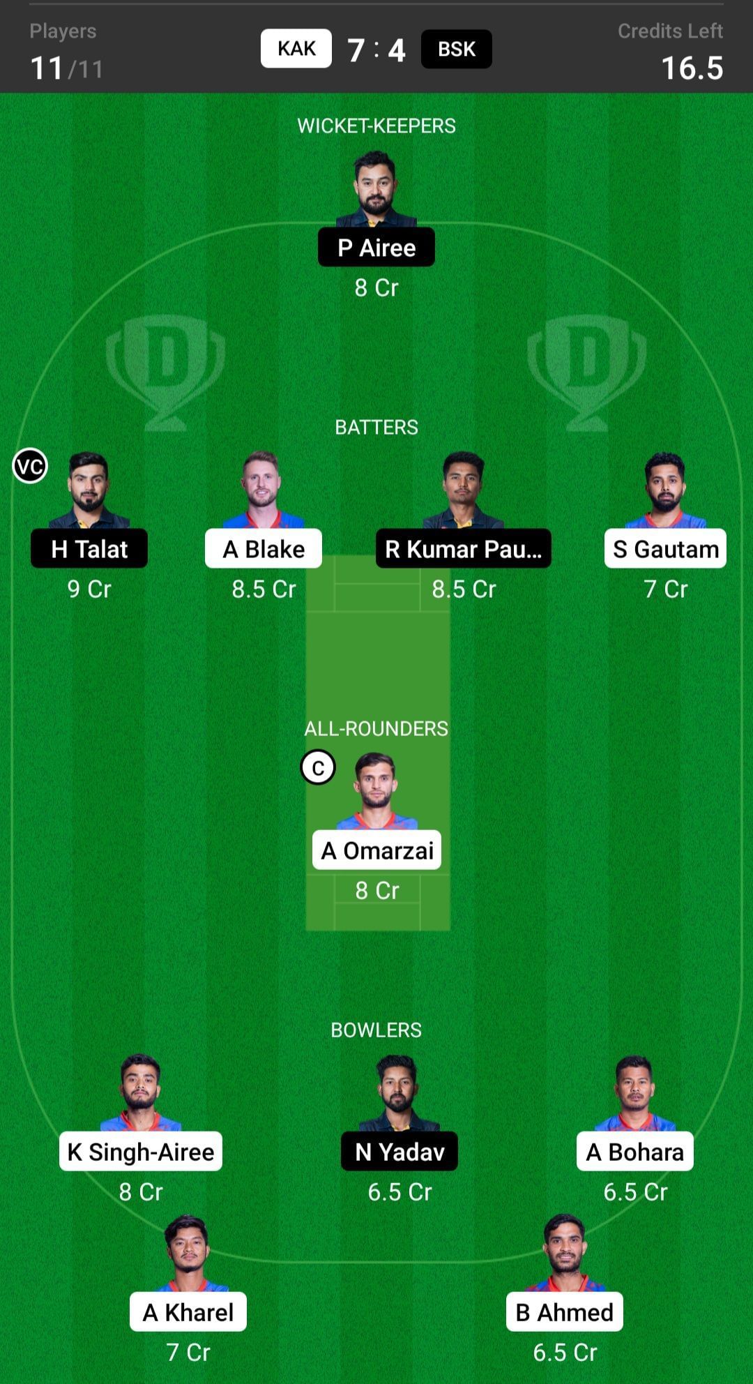 Alex Blake, Gyanendra Malla, Sandeep Rajali, Azmatullah Omarzai, Ryan Burl, Lokesh Bam (wk), Abinash Bohara, Sunam Gautam, Bashir Ahmed, Kamal Singh, Gautam KC