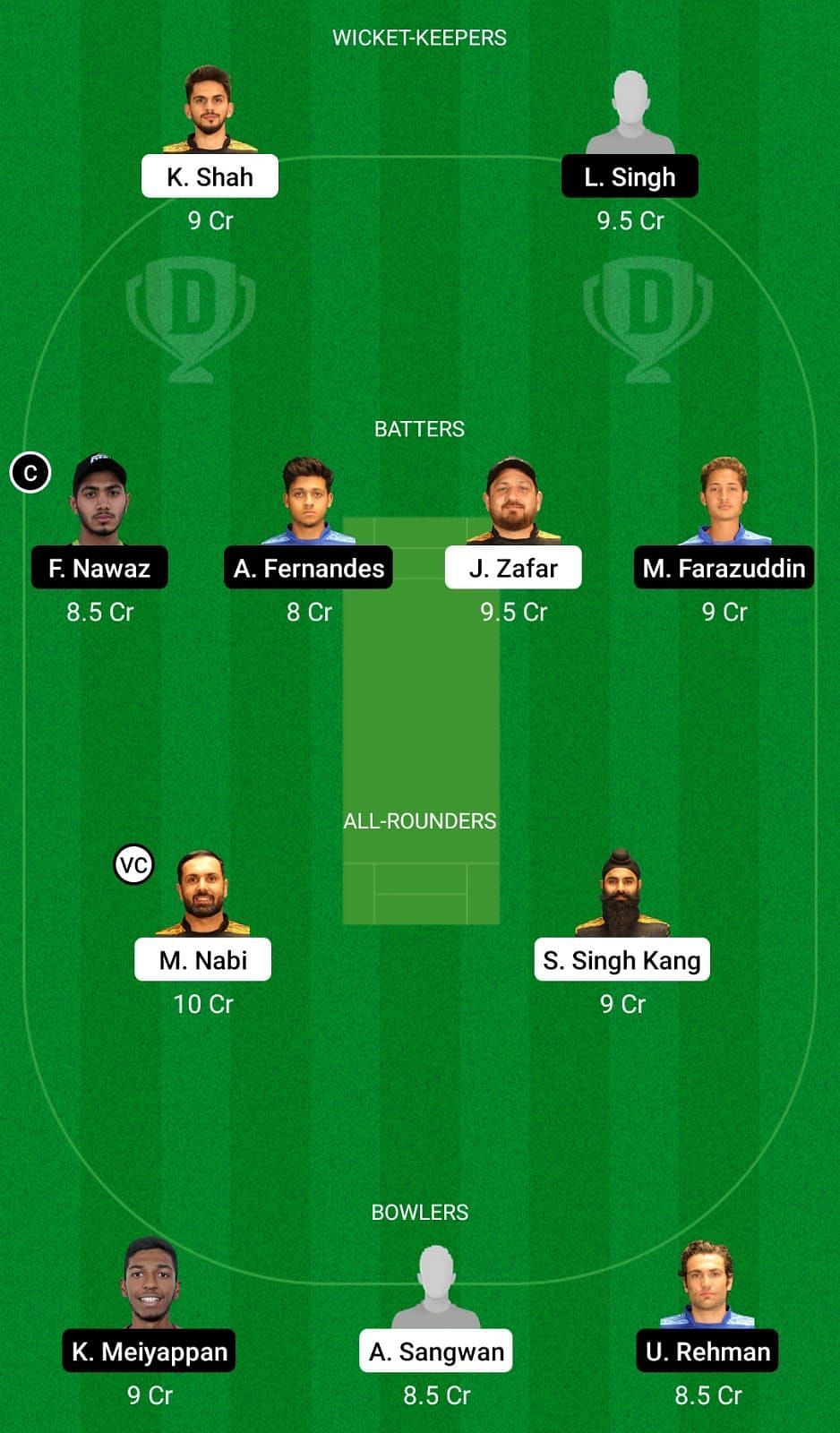 Fantasy Suggestion #1: Lovepreet Singh, Fahad Nawaz, Muhammad Farazuddin, Simranjeet Singh Kang, Mohammad Nabi, Karthik Meiyappan, Ankur Sangwan, Khalid Shah, Jamshaid Zafar, Umaid Rehman, Ahaan Fernandes