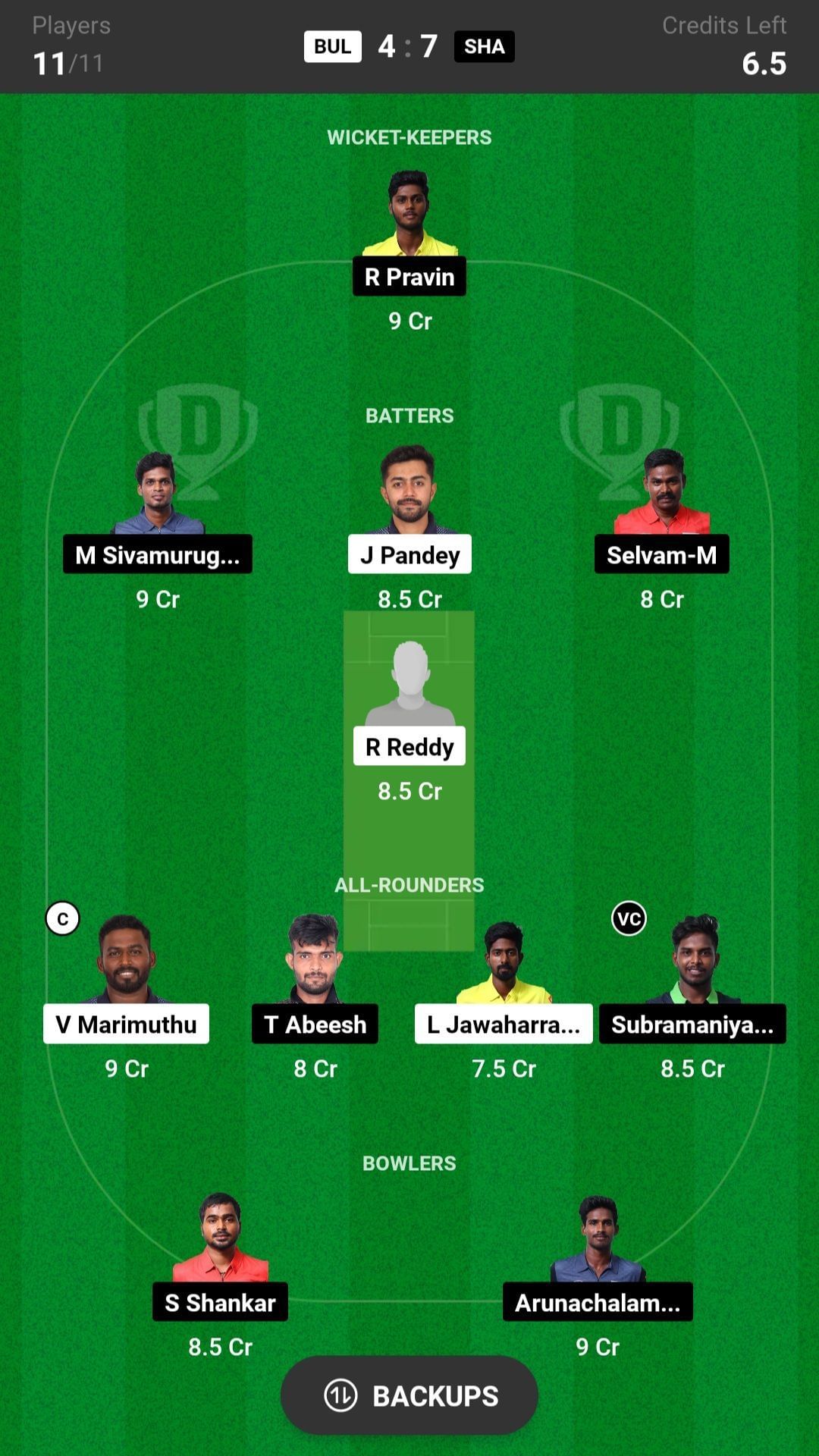 Subramaniyan K and V Marimuthu are the best all-rounder picks for the Dream11 team as they will batt in the top order and also complete their quota of overs. T Abeesh is another good pick for today's Dream11 match.