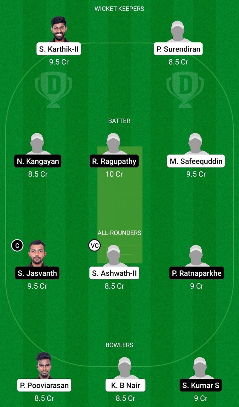 Fantasy Suggestion #1: S Karthik-II, P Surendiran, Neyan Kangayan, R Ragupathy, Mohamed Safeequddin, S Jasvanth, S Ashwath-II, Paras Ratnaparkhe, Pooviarasan Pooviarasan, Karthik B Nair, Siva Kumar