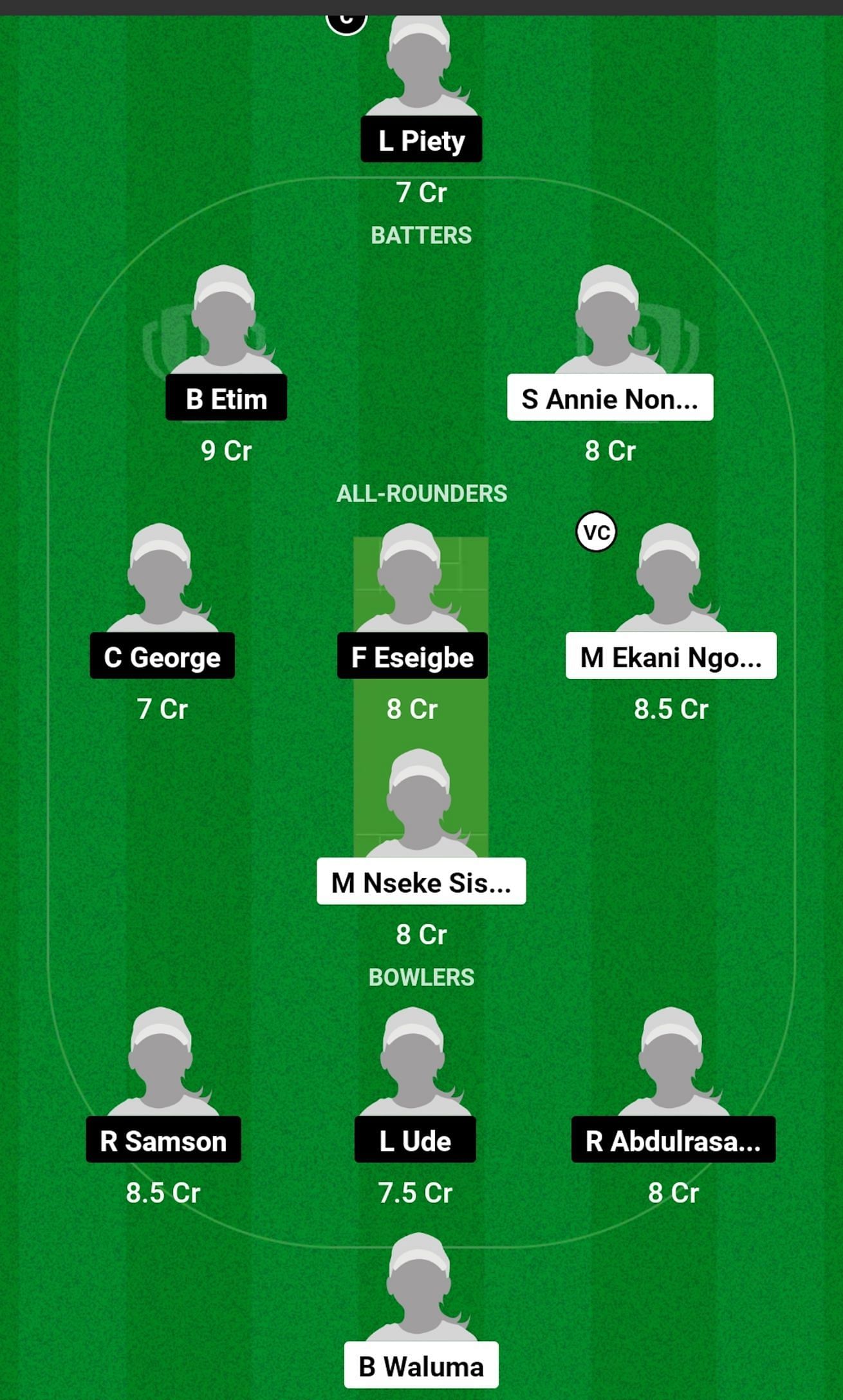 F Eseigbe has the ability to be useful for the team's cause with both the bat and the ball. She can pick up points in both innings of the match and that makes her the best all-rounder choice for this match.