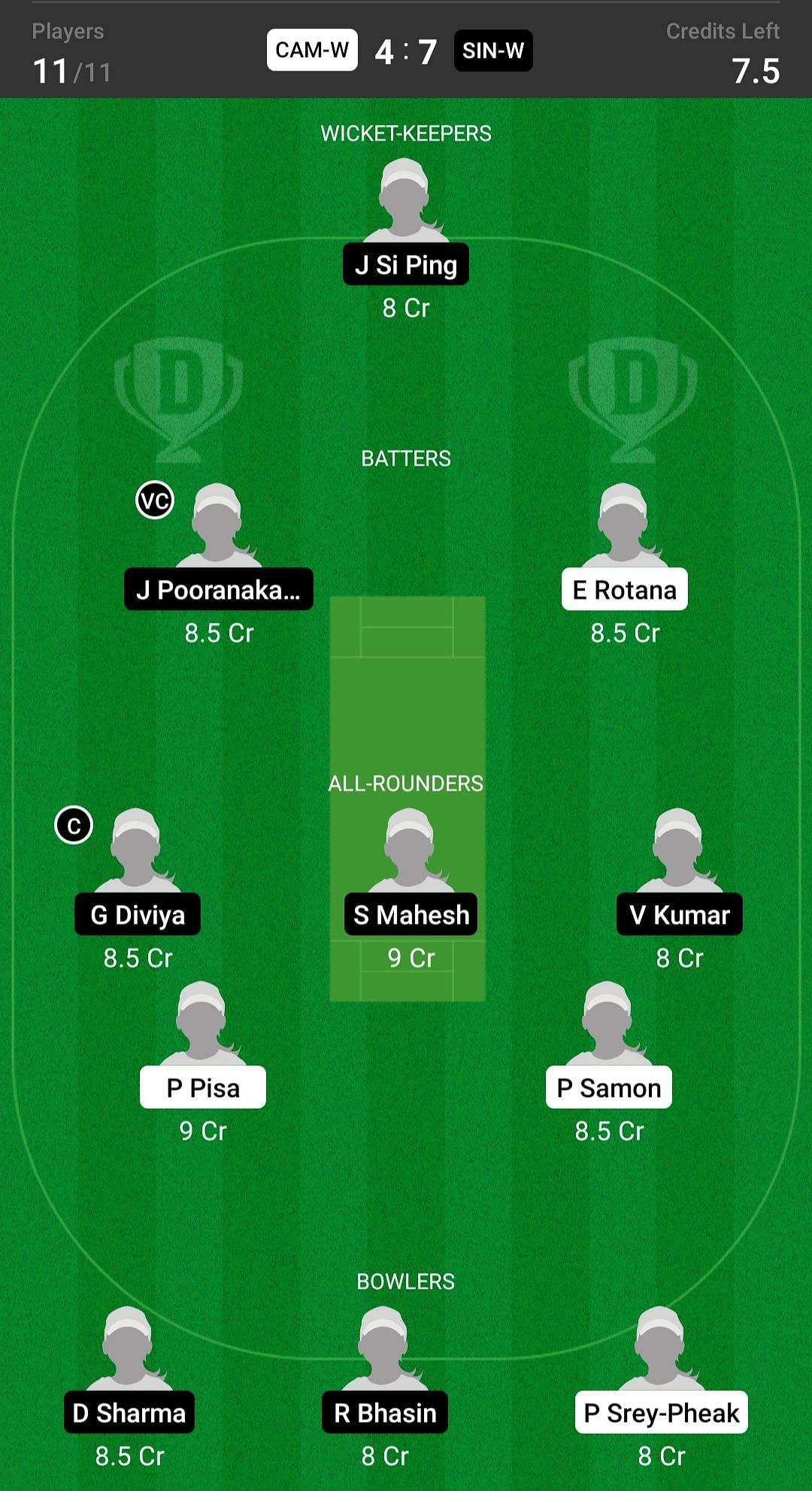 Cambodia Women vs Singapore Women Dream11 Prediction Today, Grand League