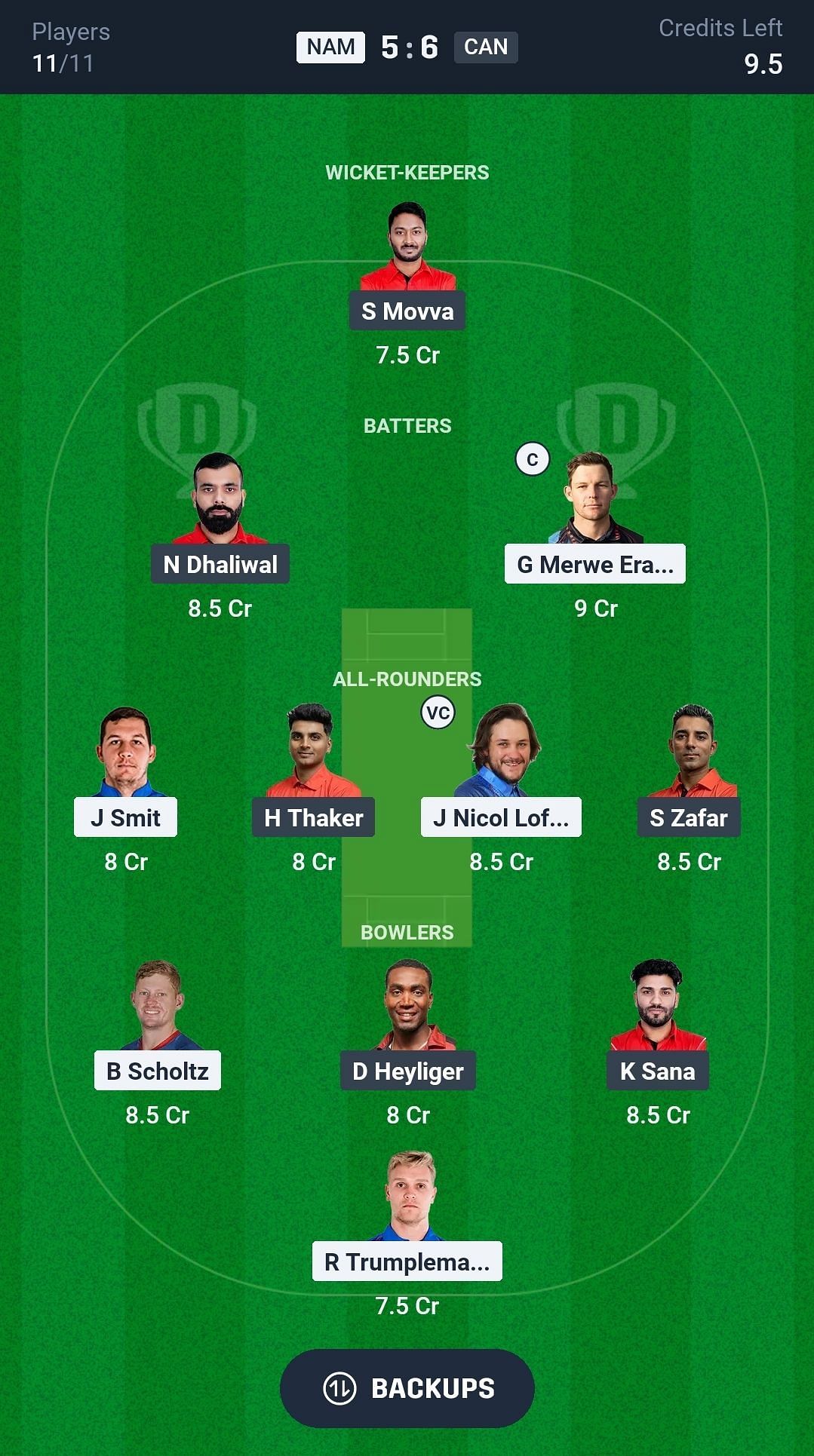 Canada vs Namibia Dream11 Prediction Today, Grand League