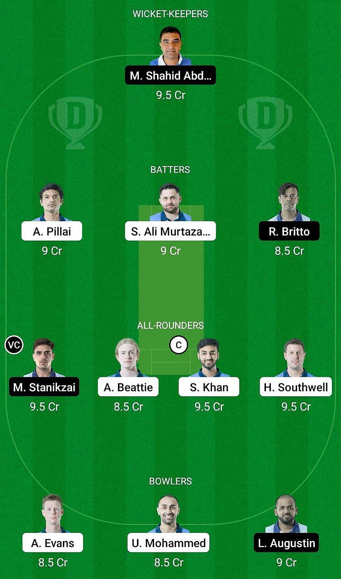 Fantasy Suggestion #1: Shahid Waridu, Arun Pillai, Syed Shah, Robert Britto, Ali Nayyer, Malyar Stanikzi, Shujaa Khan, Hugo Southwell, Alasdair Evans, Umair Mohammed, Logesh Augustin.