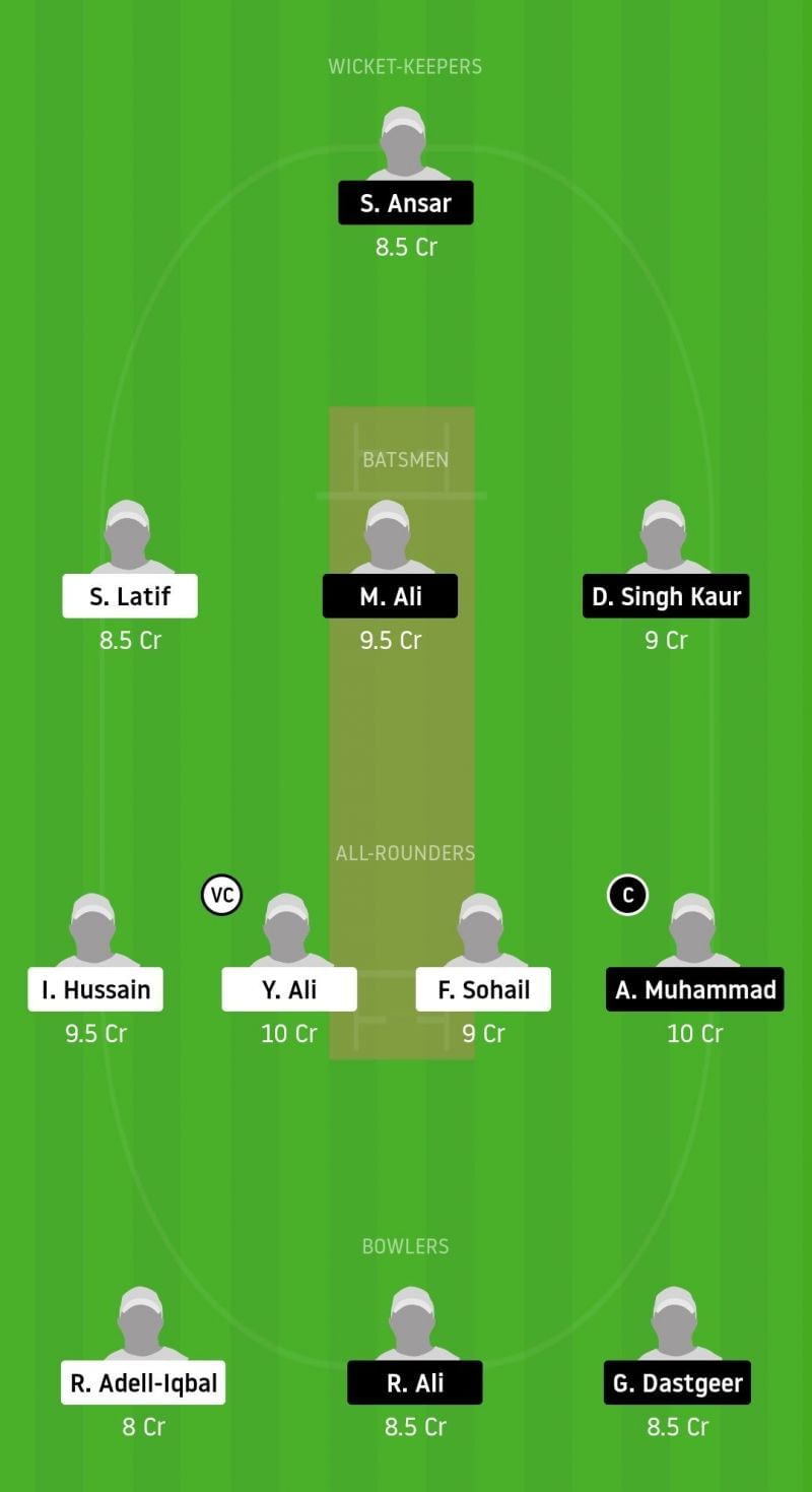 Fantasy Suggestion #1: Sufian Ansar, Saqib Latif, Mohsin Ali, Davinder Singh Kaur, Ibrar Hussain, Yasir Ali, Farrukh Sohail, Aziz Mohammad, Raja Adeel, Razaqat Ali, Ghulam Dastgeer.