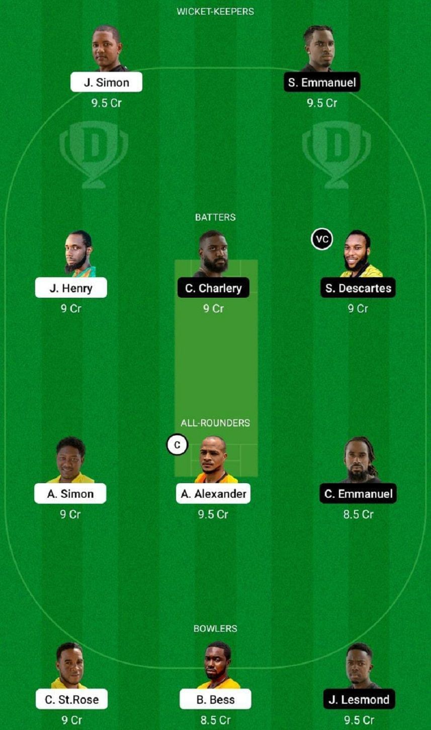 Fantasy Suggestion #1: J Simon, S Emmanuel, J Henry, C Charlery, S Descartes, A Simon, A Alexander, C Emmanuel, C St.Rose, B Bess and J Lesmond.