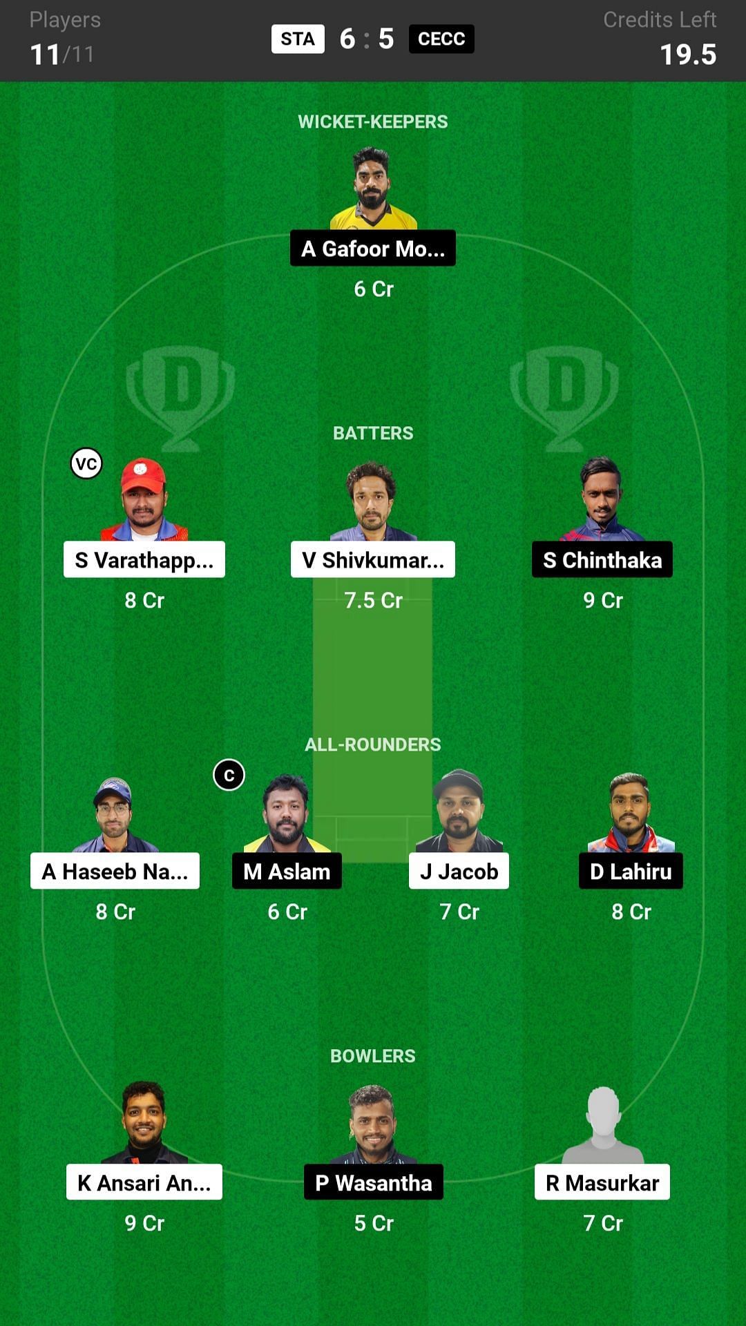S Varathappan and S Chinthaka are the two best batsmen picks for the Dream11 team. V Shivkumar played exceptionally well in the last series, so he is also a good pick for today's Dream11 fantasy team.
