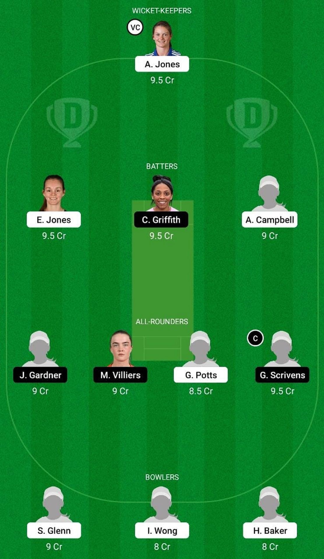 Fantasy Suggestion #1: A Jones, A Campbell, C Griffith, E Jones, G Scrivens, G Potts, J Gardner, M Villiers, I Wong, S Glenn, H Baker