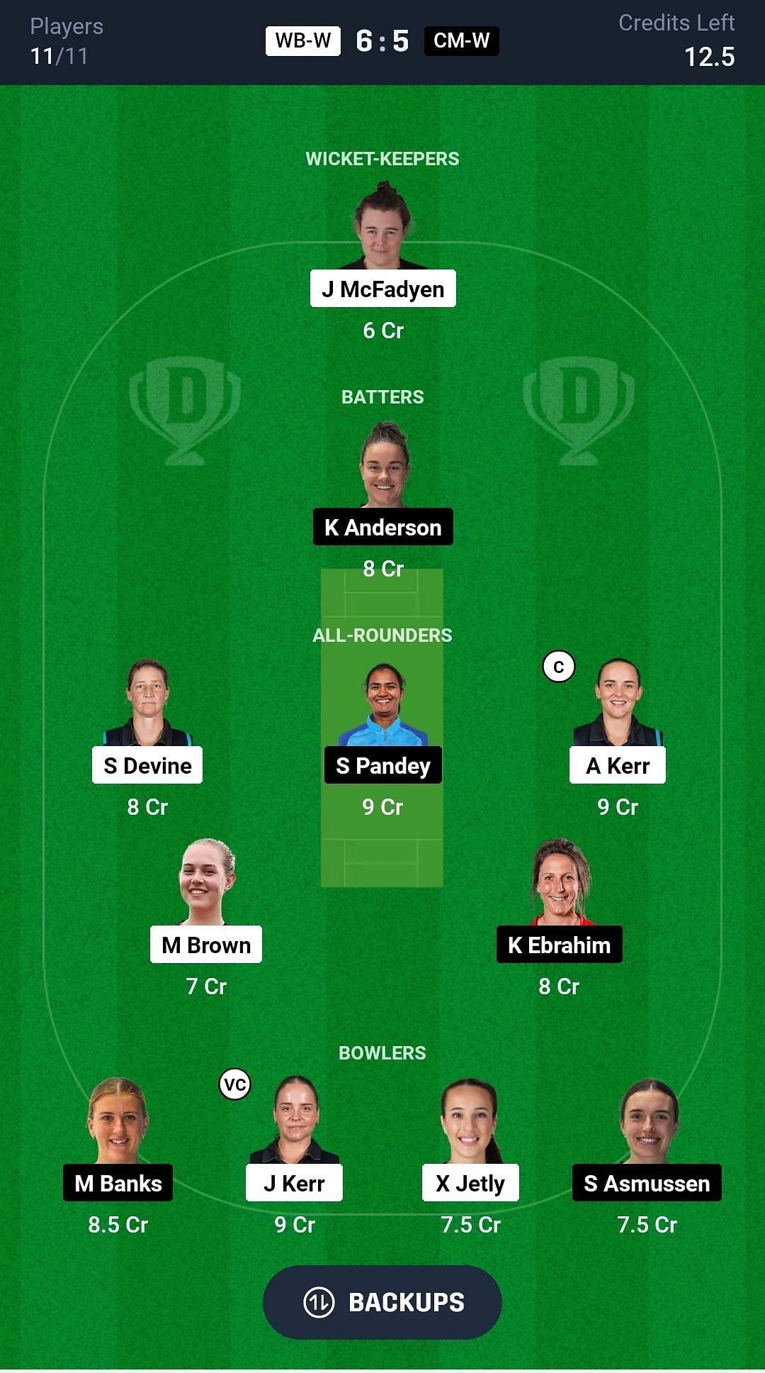 S Pandey and A Kerr are the best all-rounder picks for the Dream11 team. Both will play a crucial role for their teams in today's match. Kerr will bat in the top order and bowl a good number of overs in today's match. She has taken eight wickets and smashed 246 runs in the last six matches. M Brown is another good all-rounder for today's match.