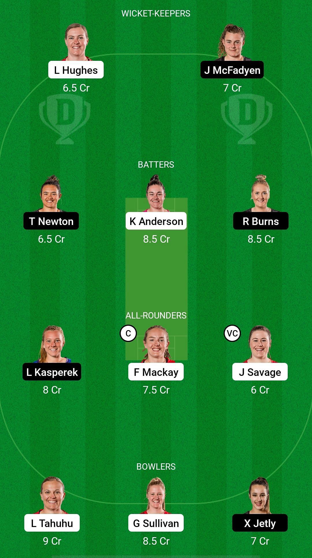 McFadyen was one of the best wicket-keeper batters in the tournament last season and will look to emulate a similar track record this time around. She accumulated 200 runs at a strike rate of 61.91 in six matches last season.