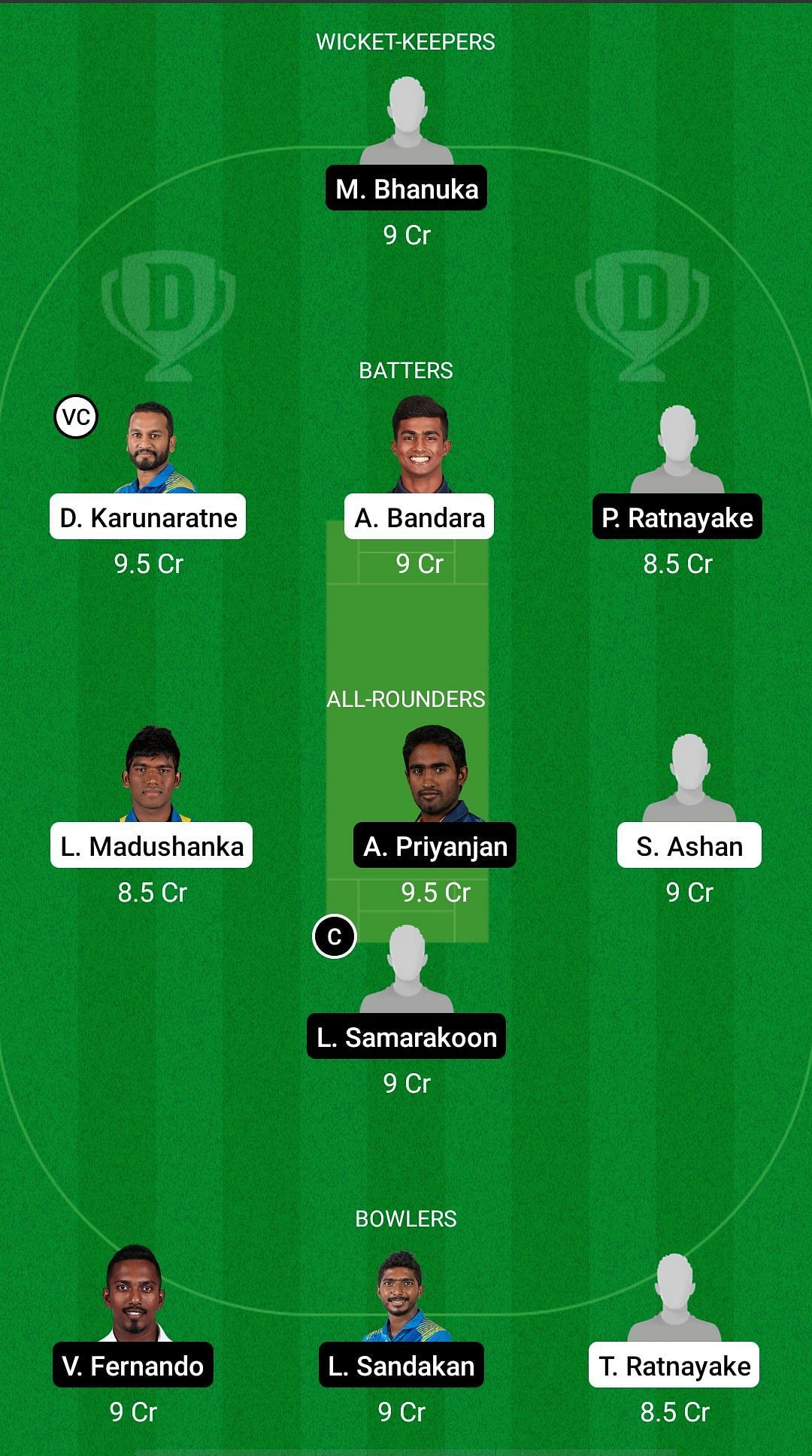Fantasy Suggestion #1: Minod Bhanuka, Dimuth Karunaratne, Ashen Bandara, Pavan Rathnayake, Lahiru Madushanka, Ashan Priyanjan, Sammu Ashan, Lahiru Samarakoon, Vishwa Fernando, Lakshan Sandakan, Tharindu Ratnayake.
