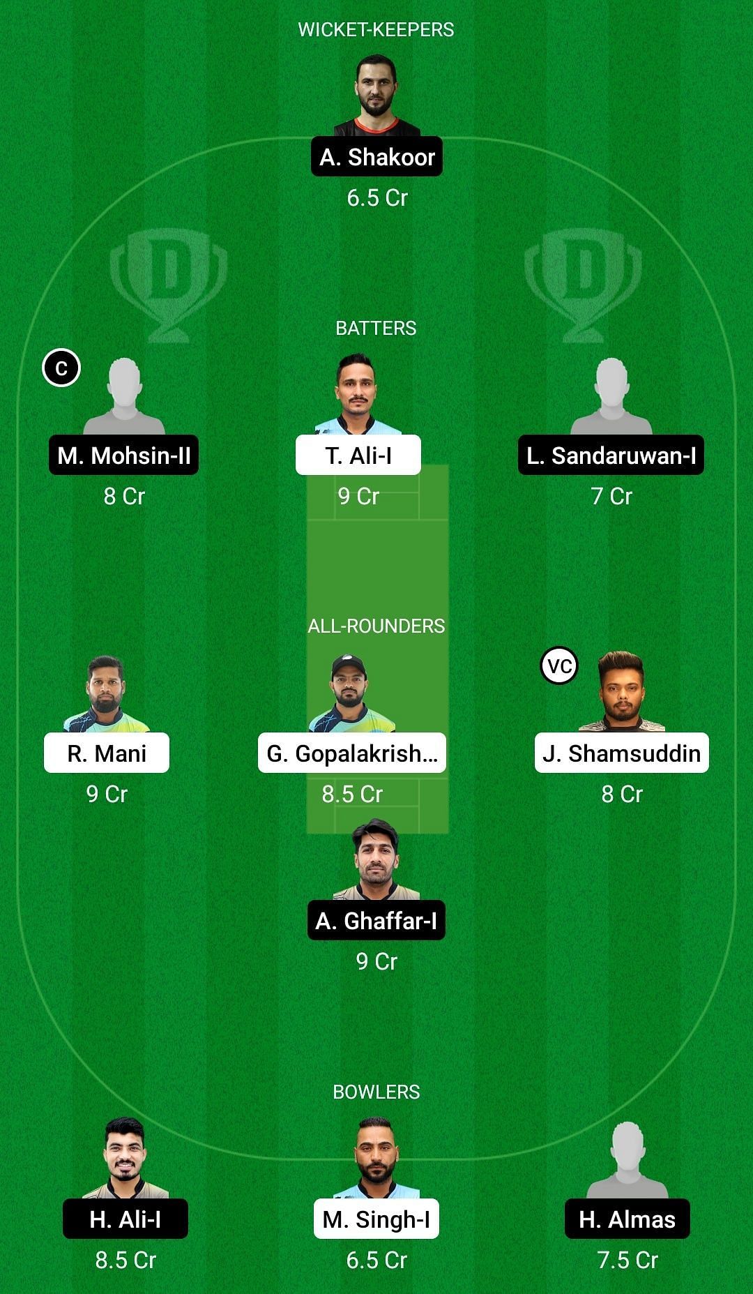 Batters: Mohammad Mohsin-II (c), Taimoor Ali-I, Lahiru Sandaruwan-I