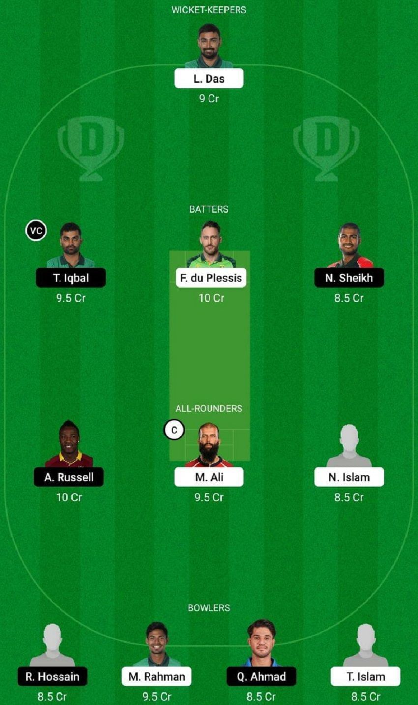 Fantasy Suggestion #1: Liton Das, Tamim Iqbal, Faf du Plessis, Mohammad Naim, Andre Russell, Moeen Ali, Nahidul Islam, Rubel Hossain, Mustafizur Rahman, Qais Ahmad and Tanvir Islam