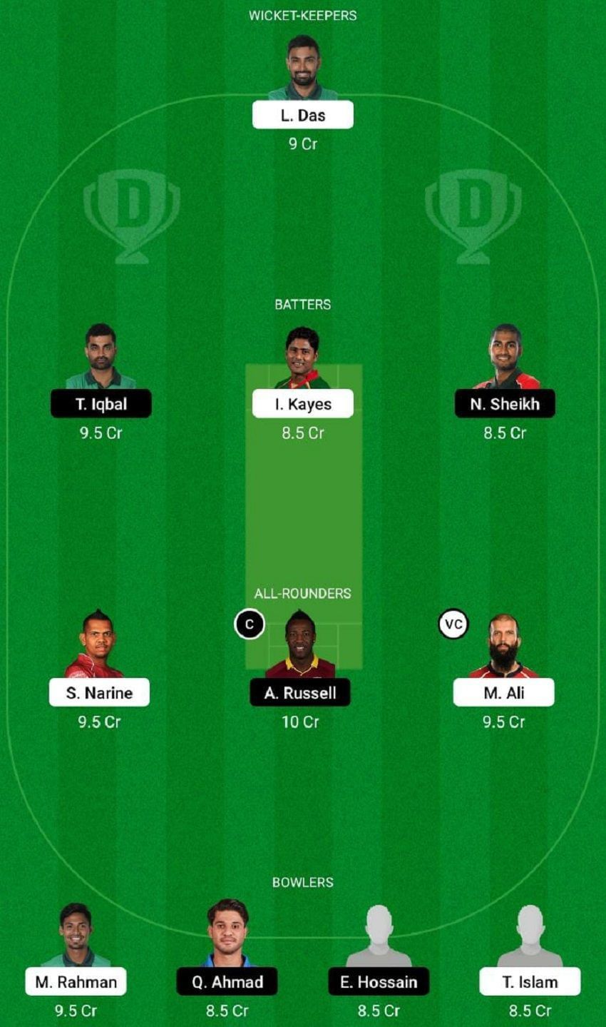 Fantasy Suggestion #2: Liton Das, Tamim Iqbal, Imrul Kayes, Mohammad Naim, Andre Russell, Moeen Ali, Sunil Narine, Ebadot Hossain, Mustafizur Rahman, Qais Ahmad and Tanvir Islam