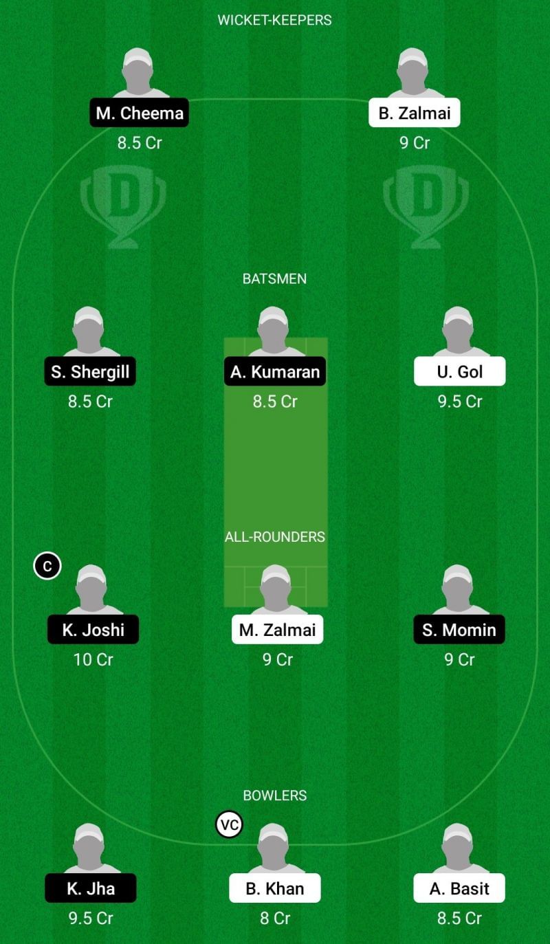 Captain: Kunal Joshi. Vice-captain: Baseer Khan