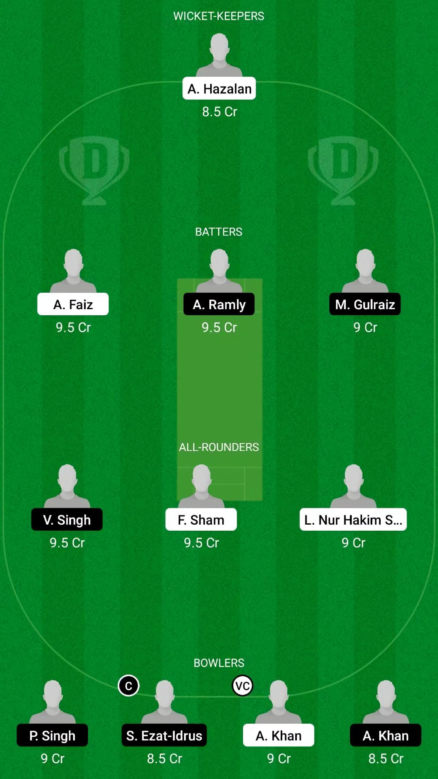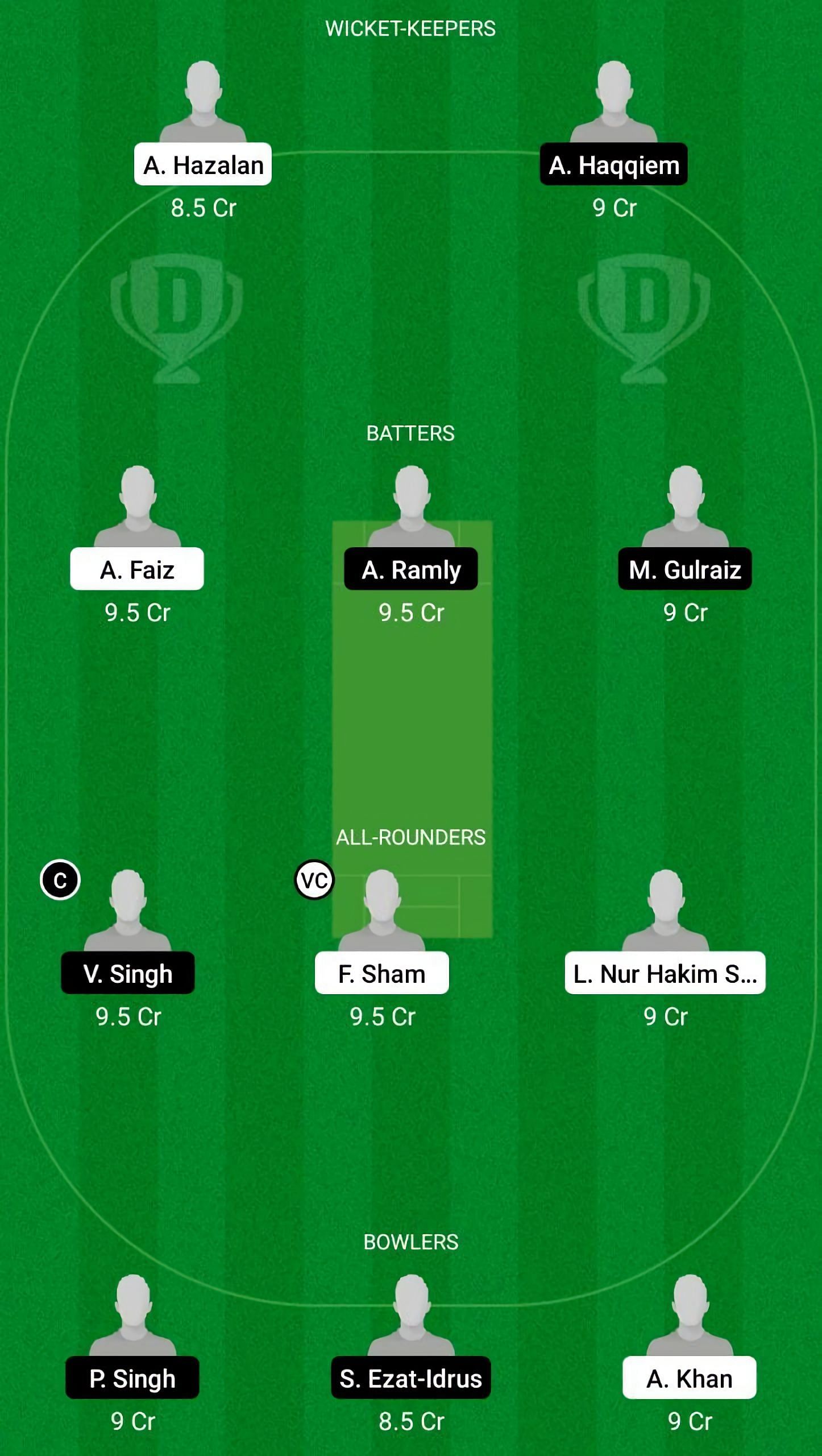 Fantasy Suggestion #2: A Hazalan, M Gulraiz, A Faiz, A Ramly, V Singh, F Sham, L Nur Hakim Sahar, S Idrus, A Khan, P Singh, A Khan