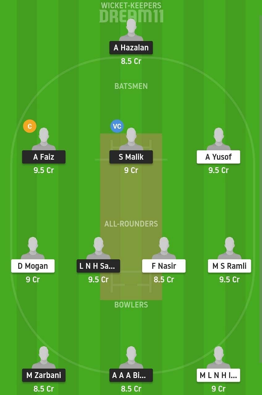 Captain: D Mogan. Vice-Captain: LNH Sahar.