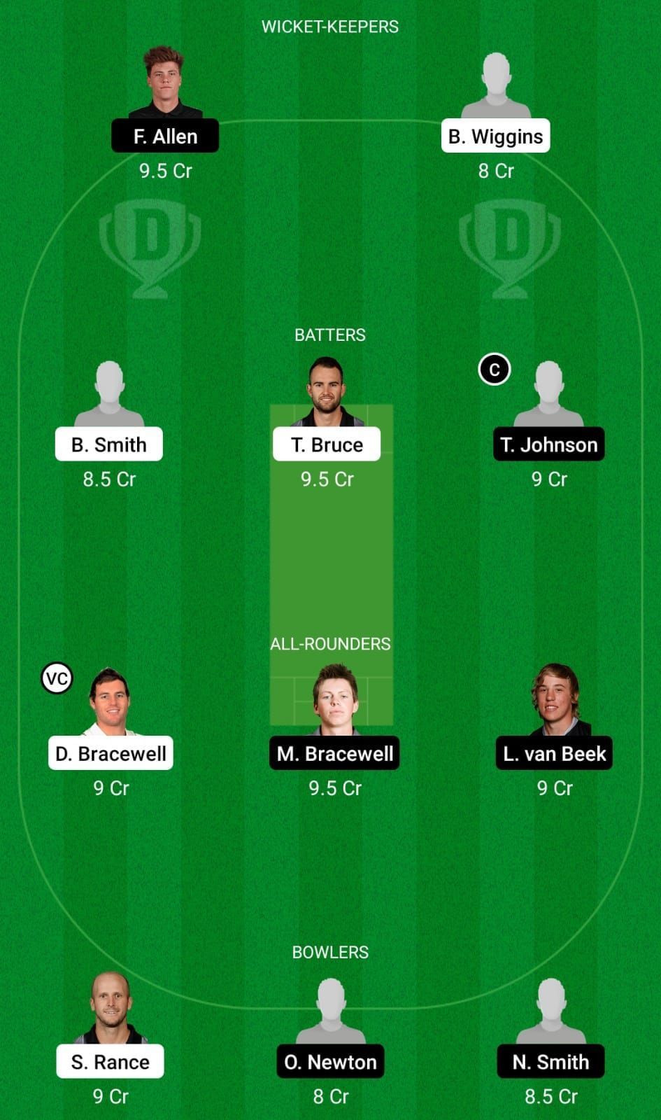 Fantasy Suggestion #1: Fin Allen, Bayley Wiggins, Troy Johnson, Doug Bracewell, Michael Bracewell, Nathan Smith, Seth Rance, Ben Smith, Tom Bruce, Logan van Beek, Ollie Newton
