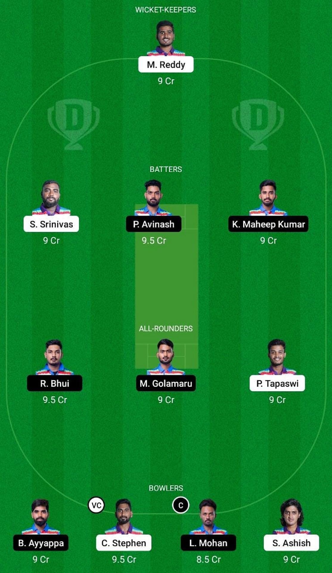 Fantasy Suggestion #2: M Reddy, P Avinash, S Srinivas, K Maheep Kumar, P Tapaswi, R Bhui, M Golamaru, L Mohan, C Stephen, B Ayyappa, S Ashish