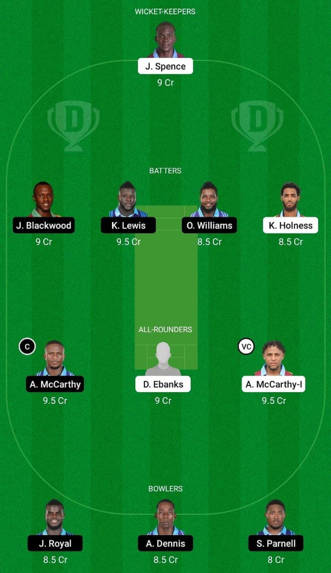 Fantasy Suggestion #1: J Spence, O Williams, K Lewis, K Holness, J Blackwood, A McCarthy, A McCarthy-I, D Ebanks, J Royal, S Parnell, A Dennis