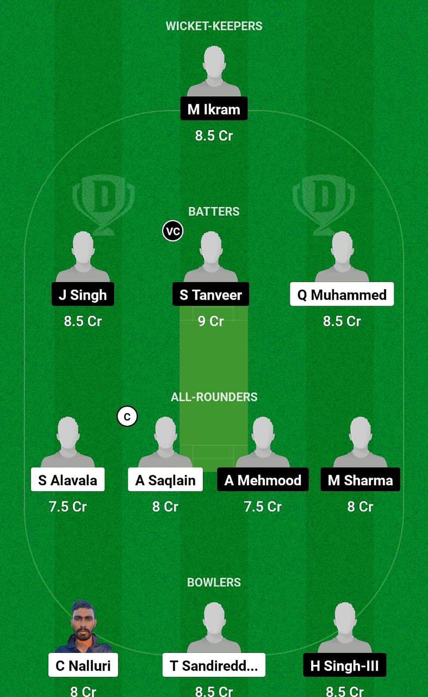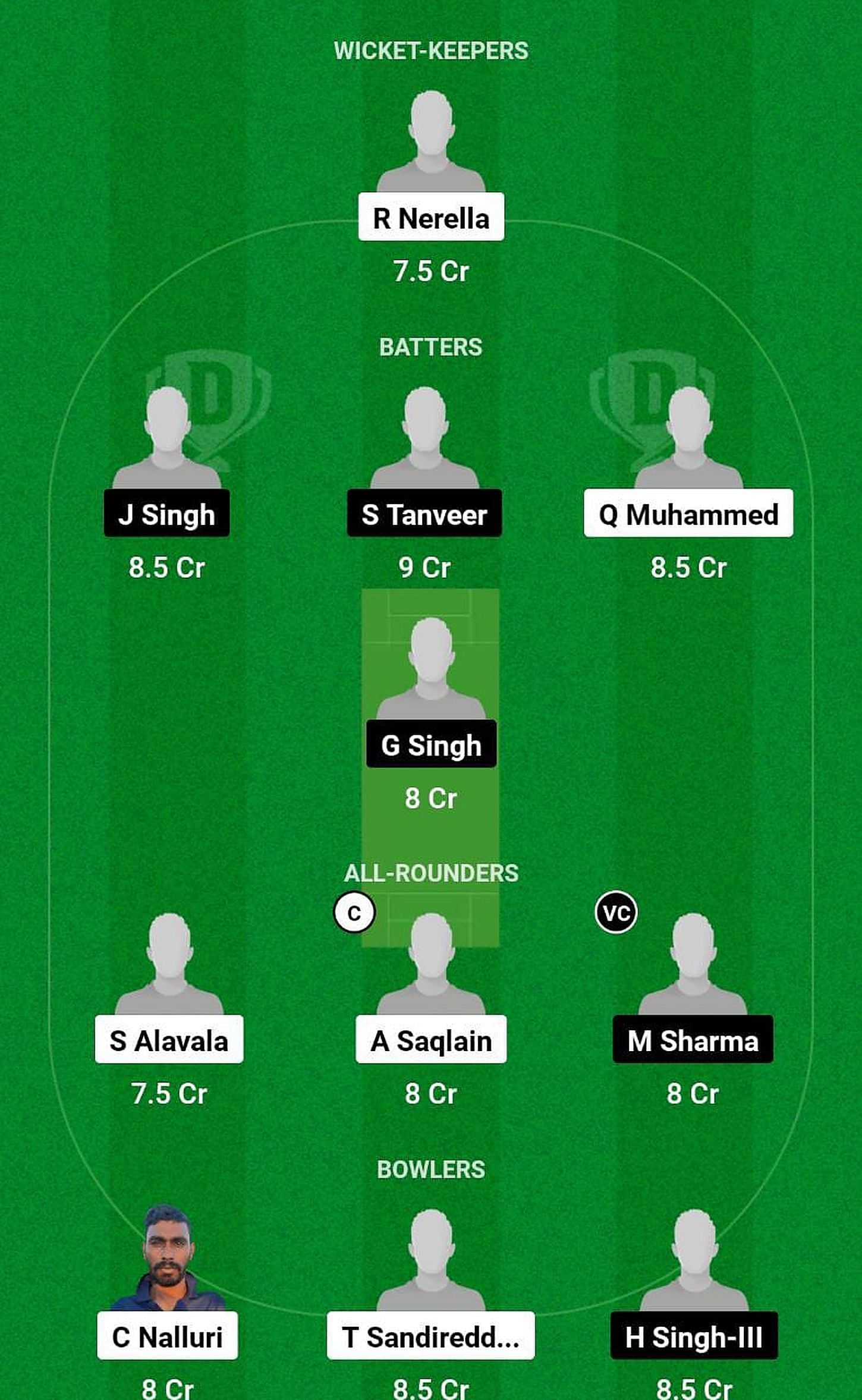 Bowlers: C Nalluri, Tirupathi Sandireddy, H Singh