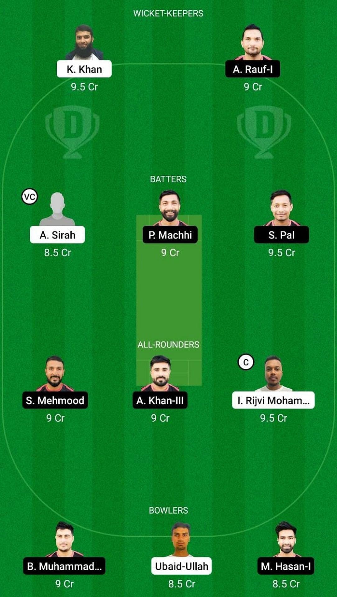 Fantasy Suggestion #2: A Rauf, K Khan, A Sirah, P Machhi, A Sulehri, I Rijvi Mohammed, S Mehmood, S Kumar Jagra, B Muhammad Shah, M Hasan, U Ullah