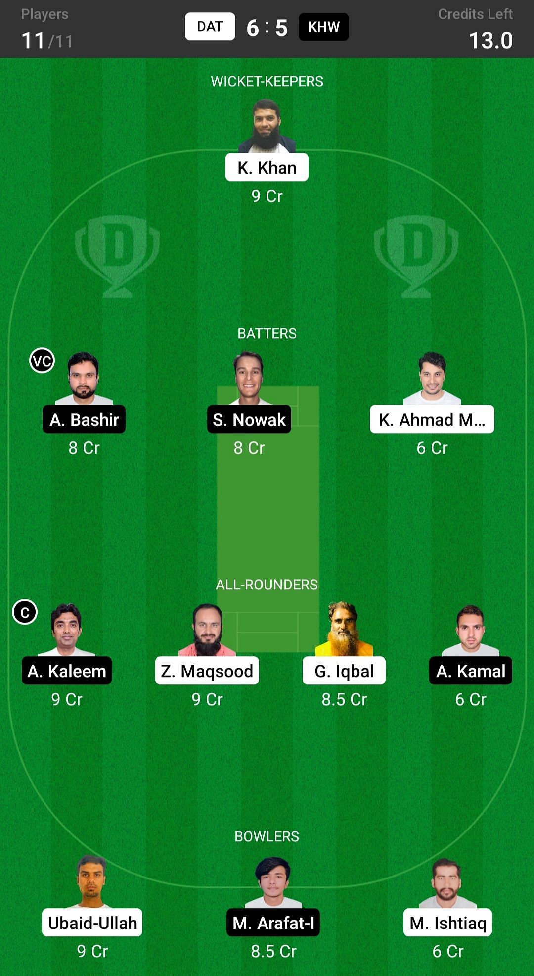 DAT vs KHW match captain and vice-captain choices