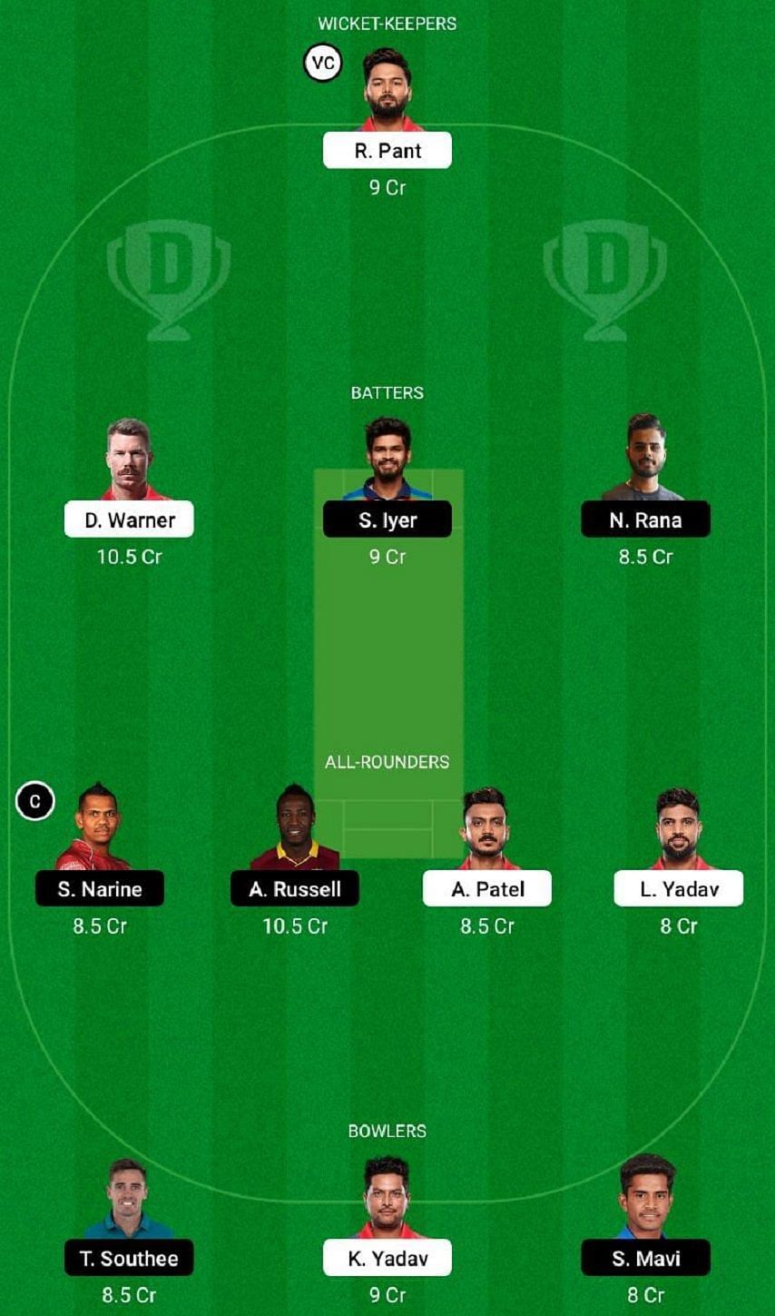 Fantasy Suggestion #2: Rishabh Pant, David Warner, Shreyas Iyer, Nitish Rana, Lalit Yadav, Sunil Narine, Andre Russell, Axar Patel, Tim Southee, Shivam Mavi and Kuldeep Yadav.