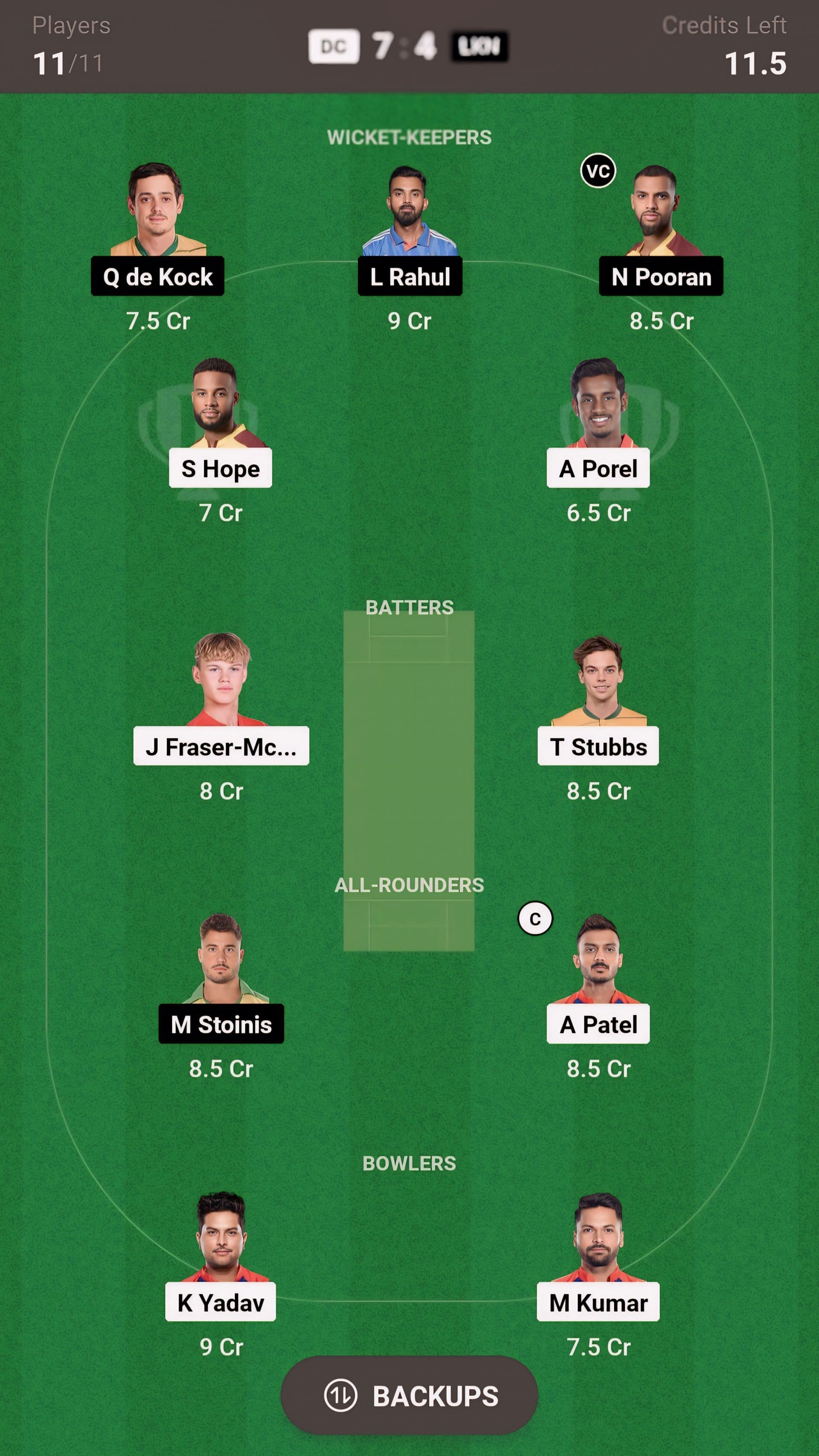 Wicketkeepers: KL Rahul, N Pooran, A Porel, S Hope, Q de Kock